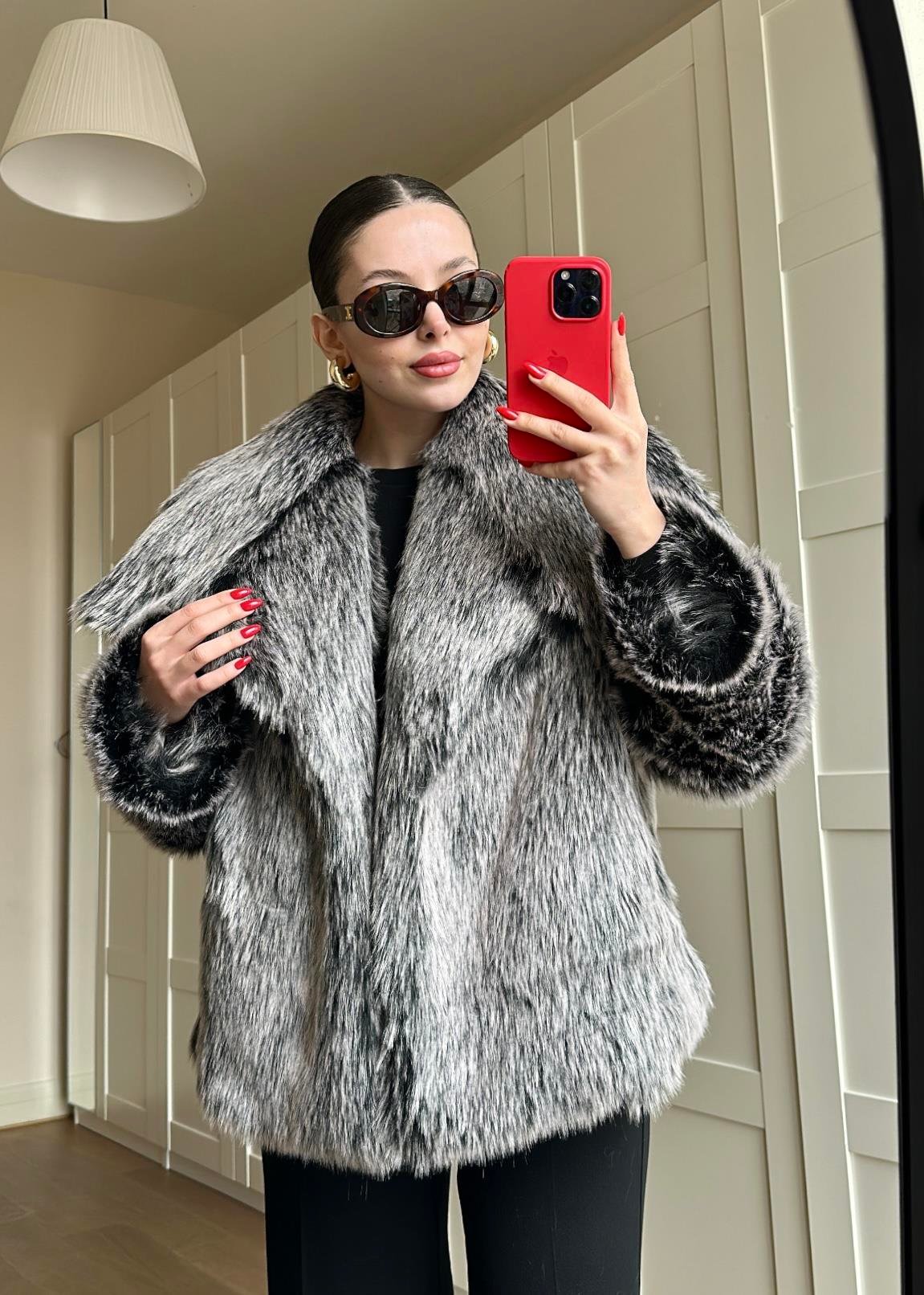 3 AL 2 ÖDEKolları Kürklü Kaşe Kaban SİYAH