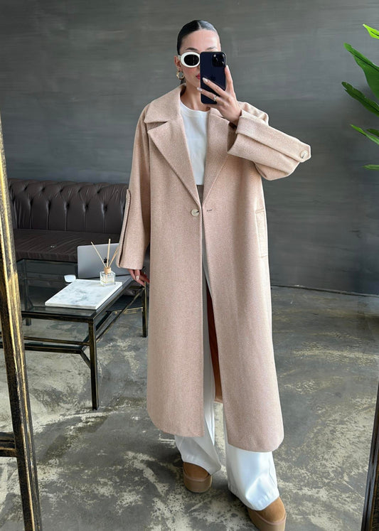 3 AL 2 ÖDEAlpaka Uzun Palto BEJ