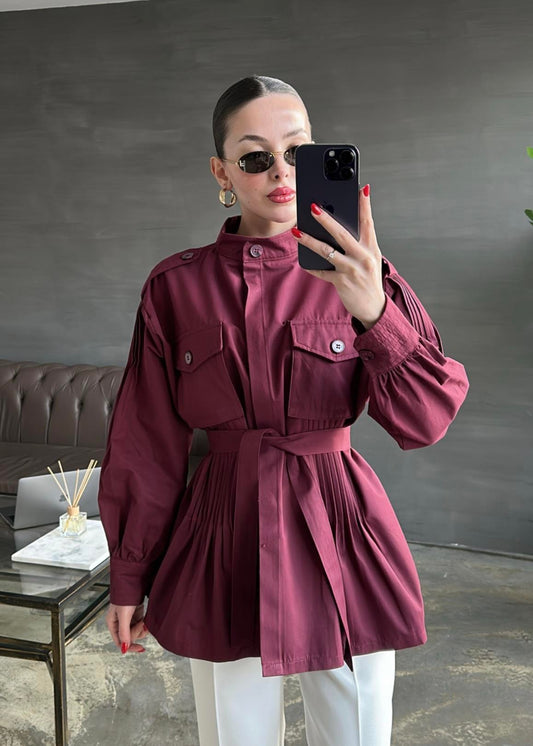 3 AL 2 ÖDENervür Detaylı Kap Ceket BORDO
