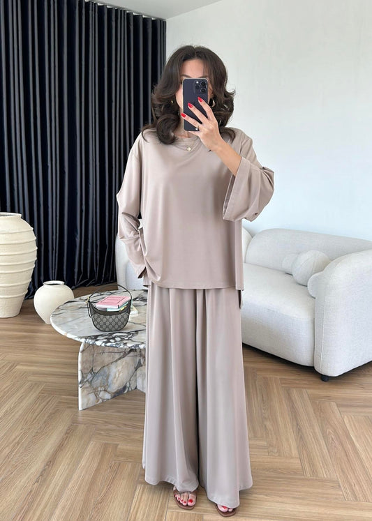 3 AL 2 ÖDEModal Geniş Paçalı Takım Bej