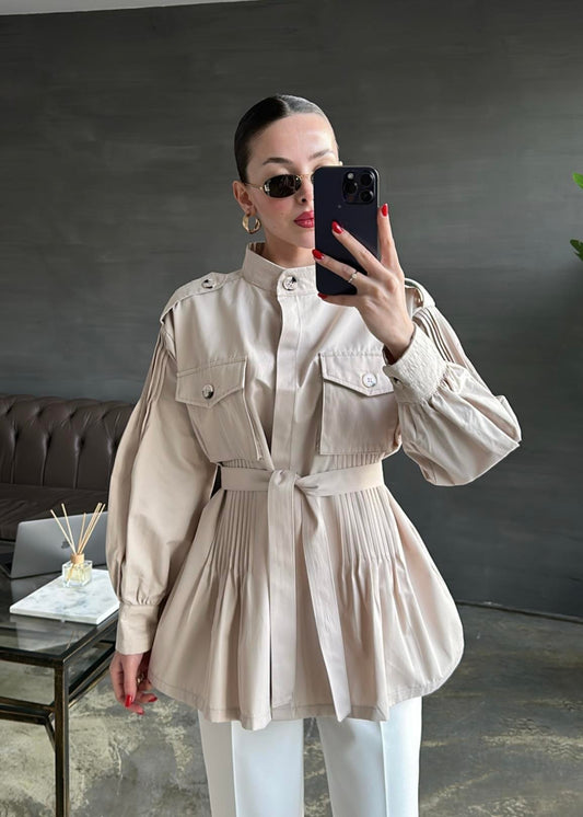 3 AL 2 ÖDENervür Detaylı Kap Ceket BEJ