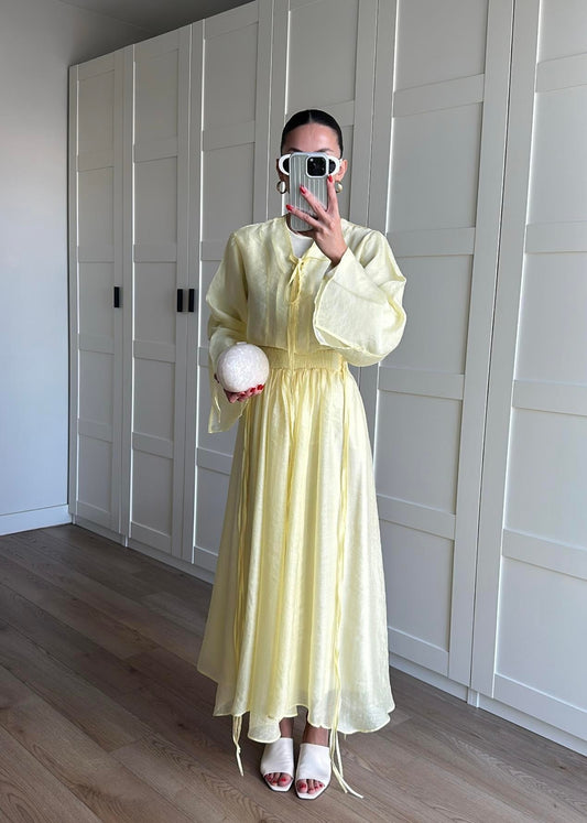 3 AL 2 ÖDEYaka Detaylı Şifon Takım SARI