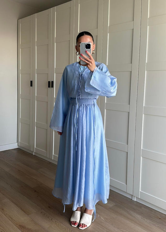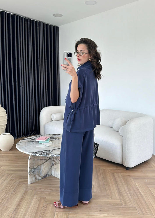 3 AL 2 ÖDEYaka Detaylı Şifon Takım MAVİ