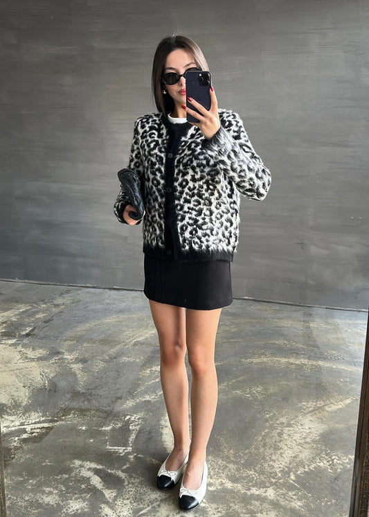 3 AL 2 ÖDEYün Efekt Leopar Hırka SİYAH