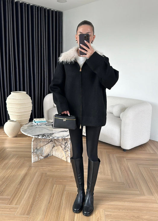 3 AL 2 ÖDEÇıkarılabilir Kürklü Hırka SİYAH