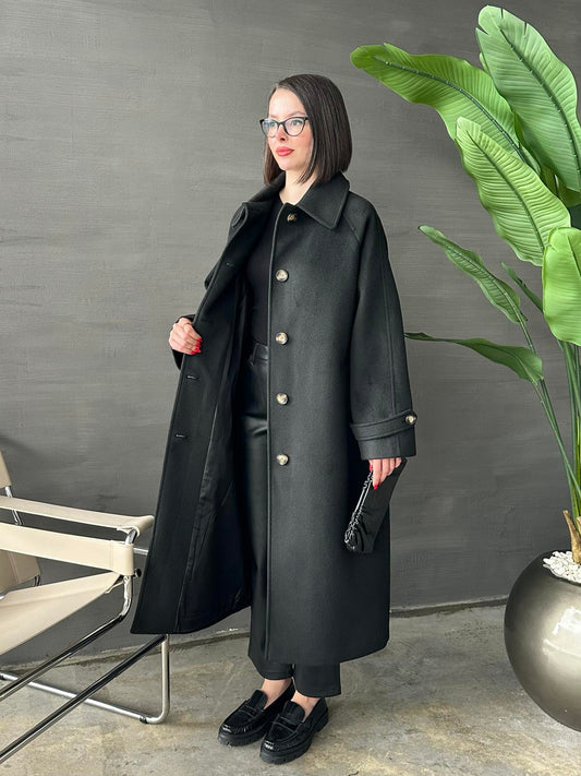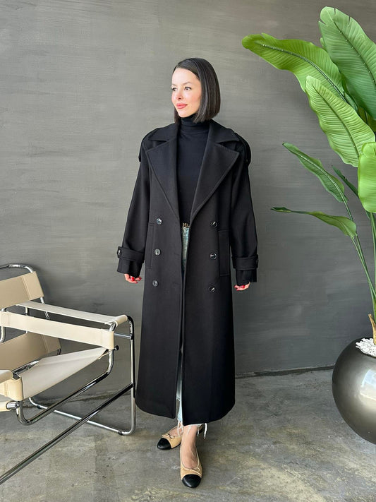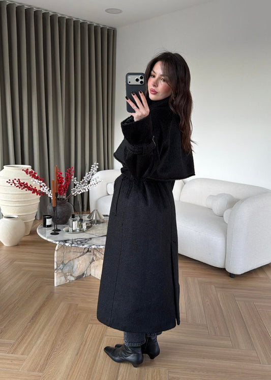 3 AL 2 ÖDEGömlek Yakalı Kemerli Kaban SİYAH