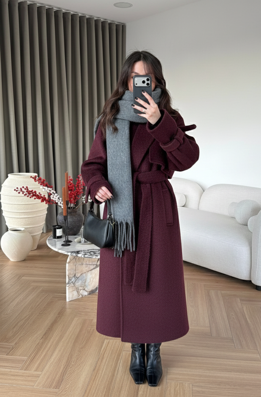 3 AL 2 ÖDEOmuzu Deri Detaylı Uzun Kaban ACI KAHVE