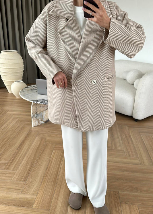 3 AL 2 ÖDEBalıksırtı Ara Boy Kaban BEJ