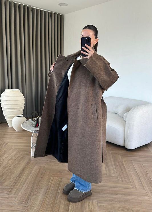 3 AL 2 ÖDEGömlek Yakalı Kuşaklı Kaban KAHVERENGİ