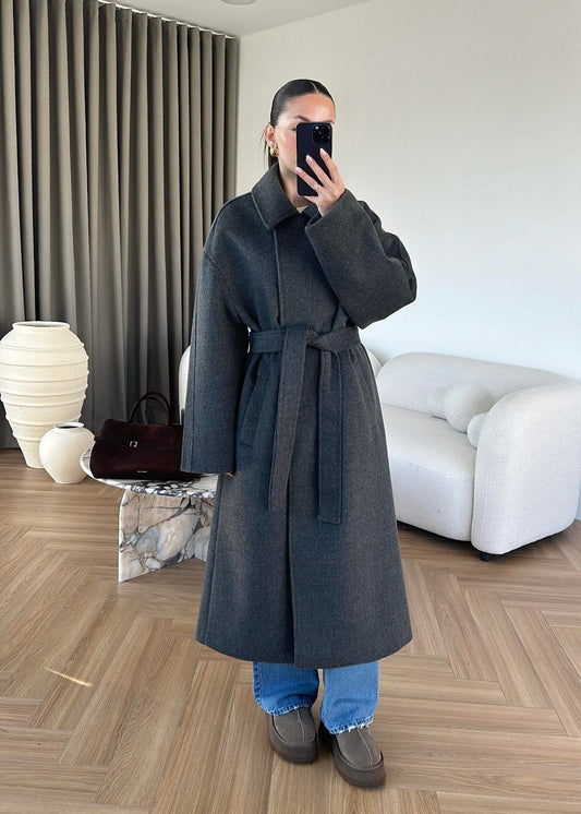 3 AL 2 ÖDEGömlek Yakalı Kuşaklı Kaban ANTRASİT