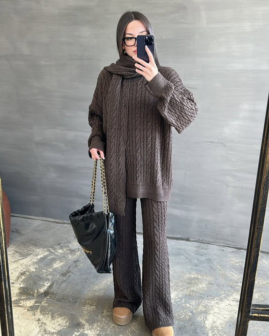 3 AL 2 ÖDEAtkılı Saç Örgülü Üçlü Takım KAHVERENGİ