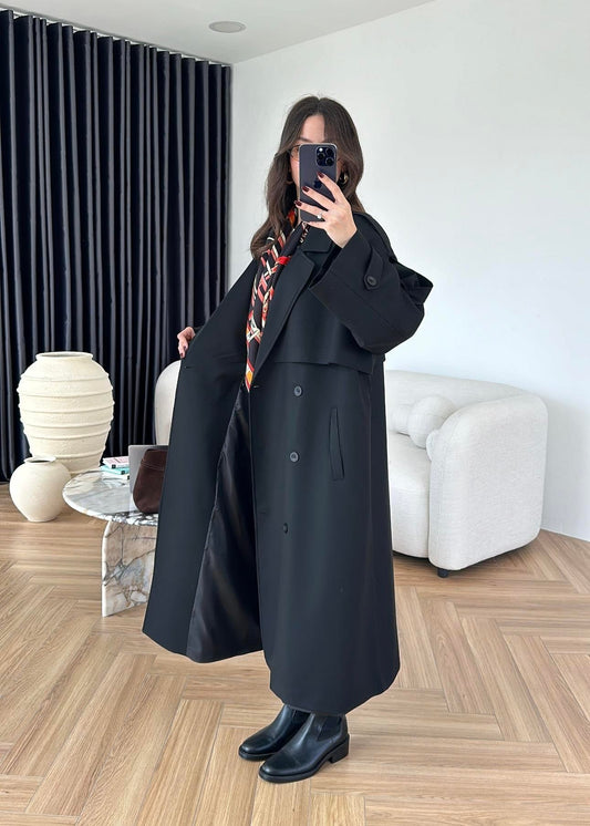 3 AL 2 ÖDEOmuzu Uzun Apoletli Trençkot SİYAH