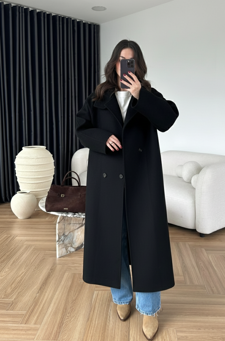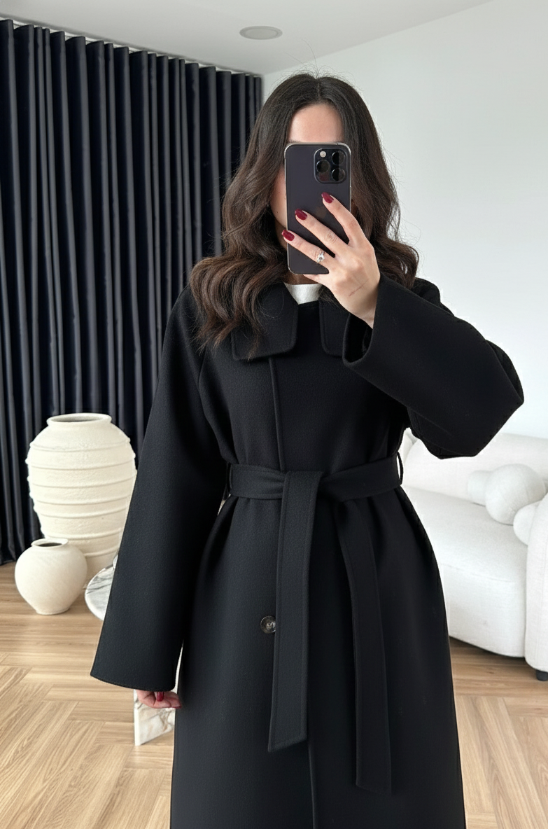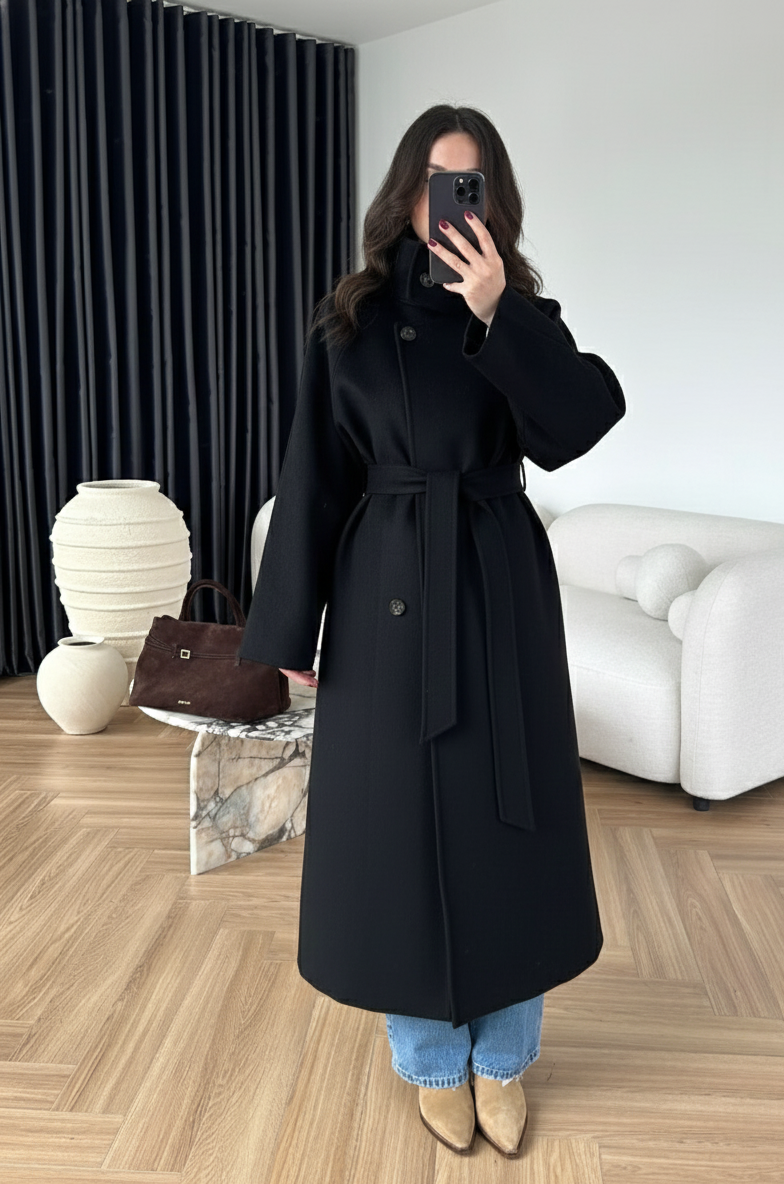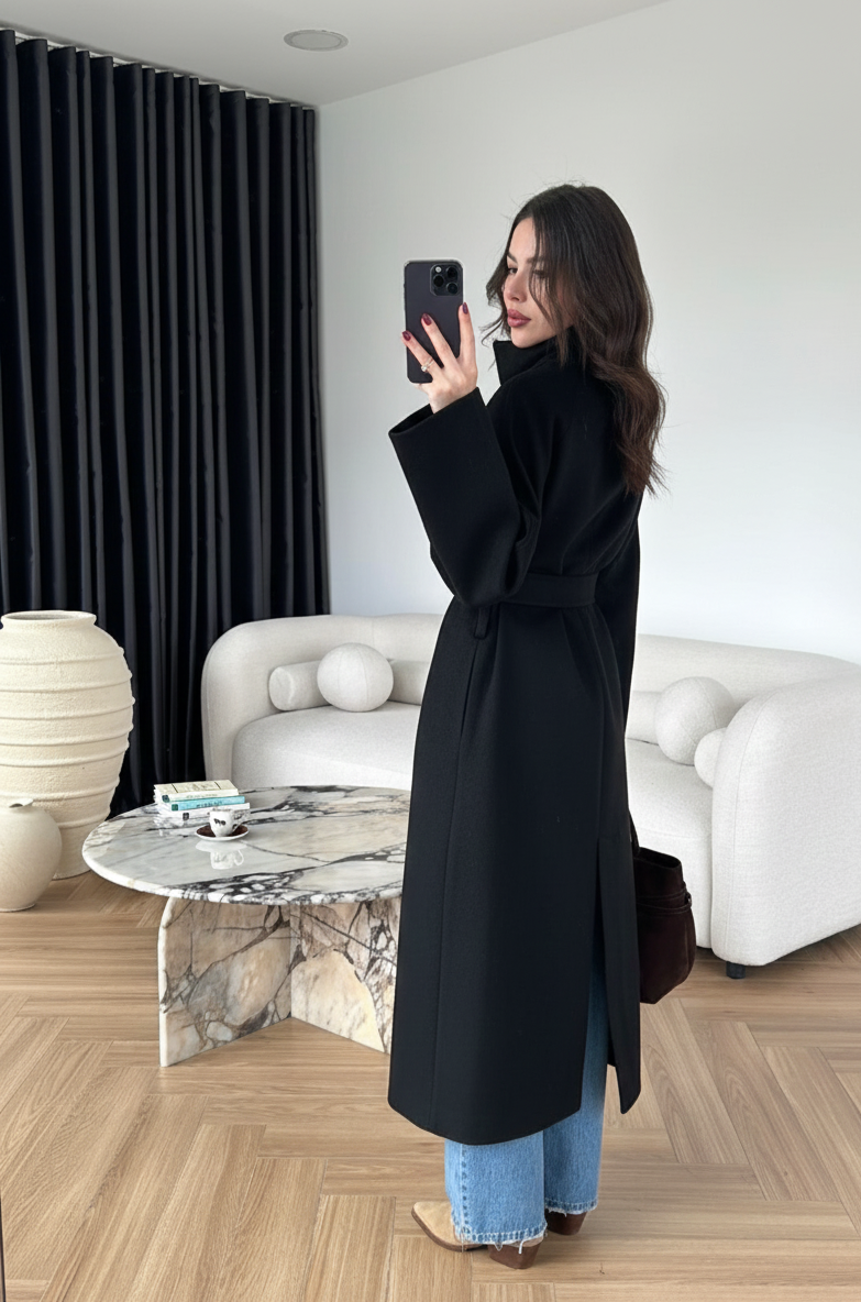 Dik Yakalı Kuşaklı Kaban SİYAH