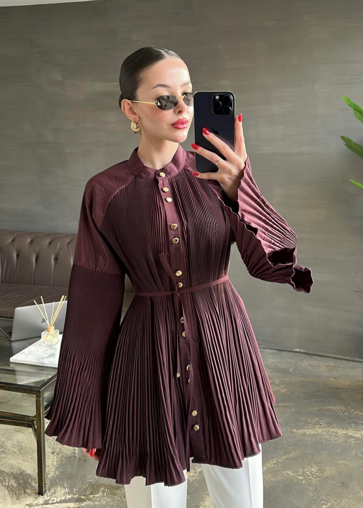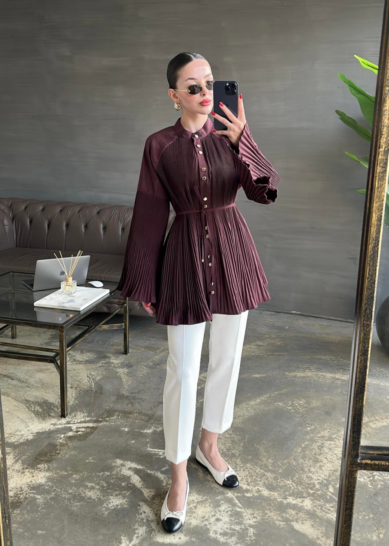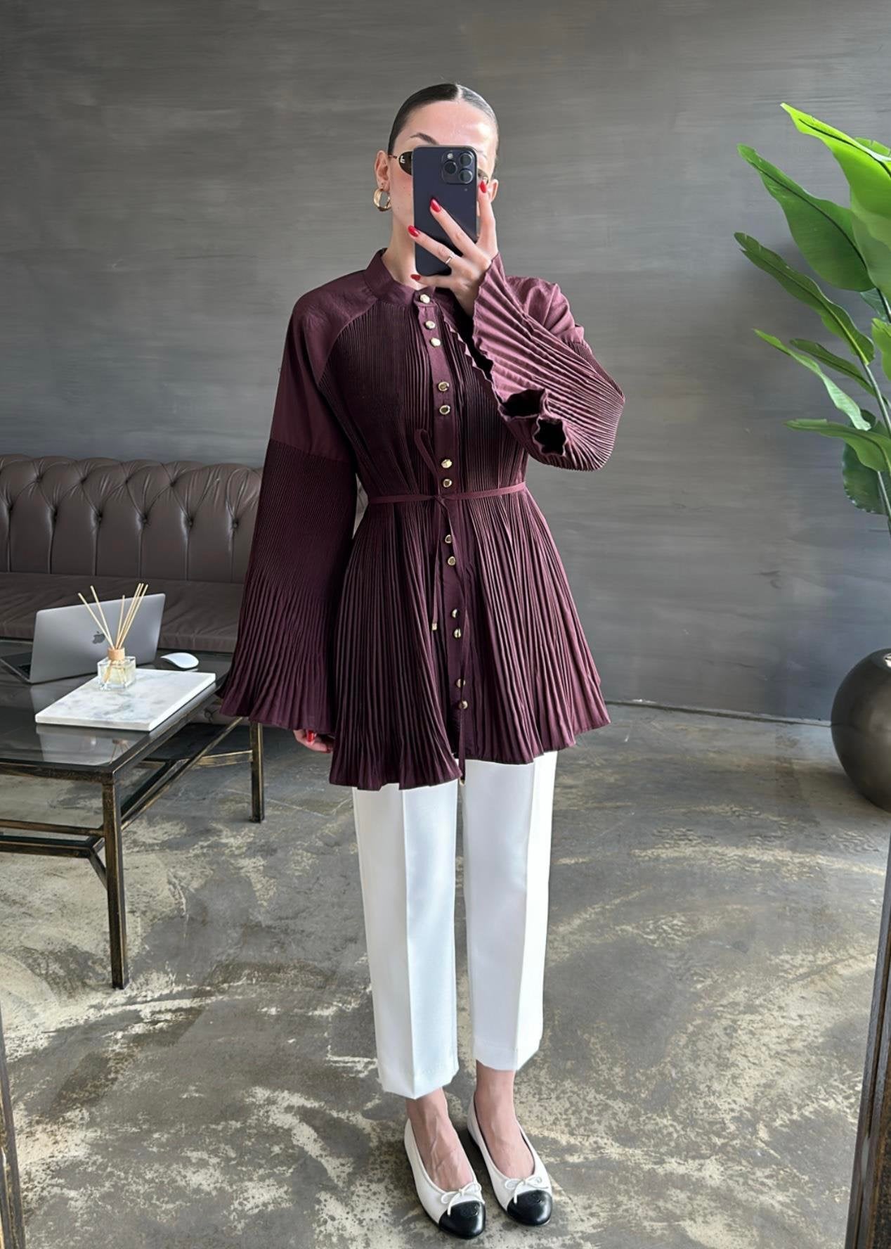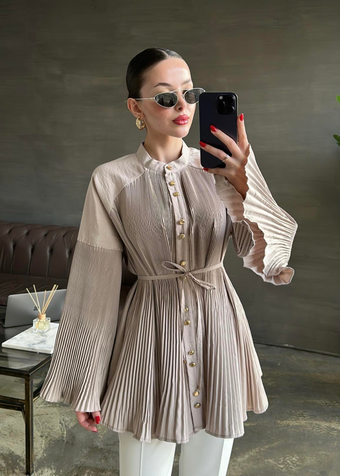 Dik Piliseli Bağlamalı Gömlek TAŞ