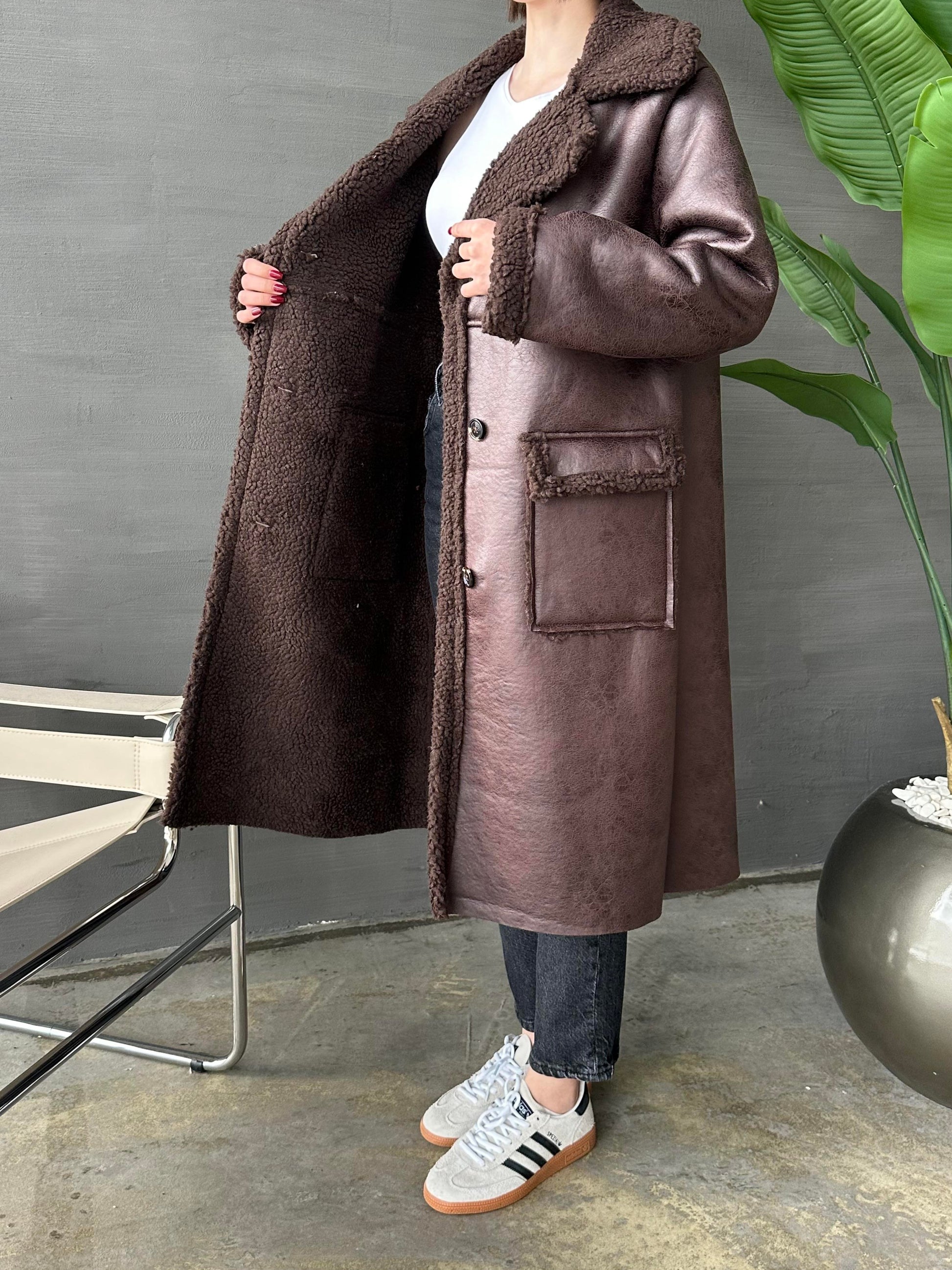 Uzun Nubuk Kürklü Kaban ACI KAHVE
