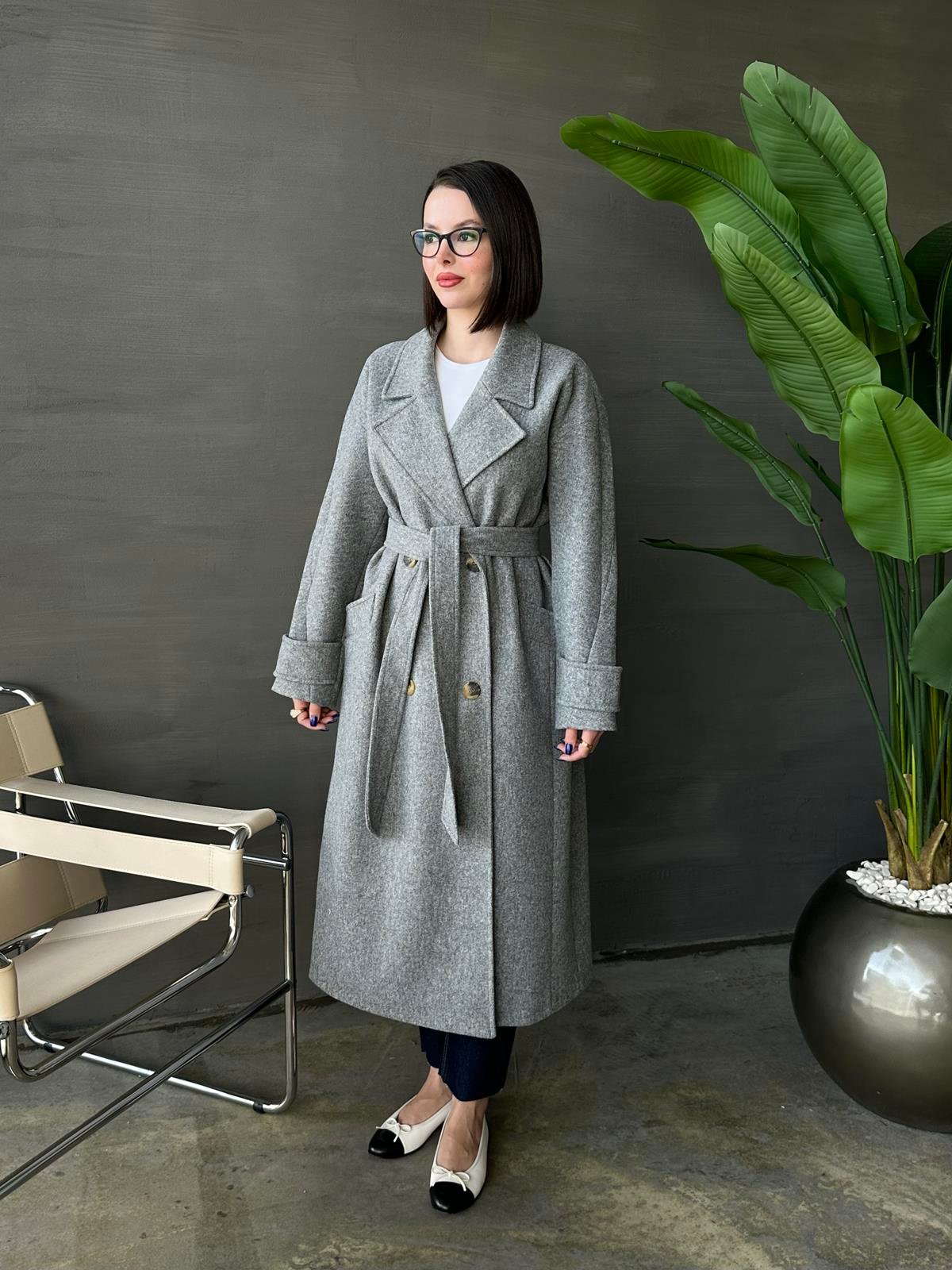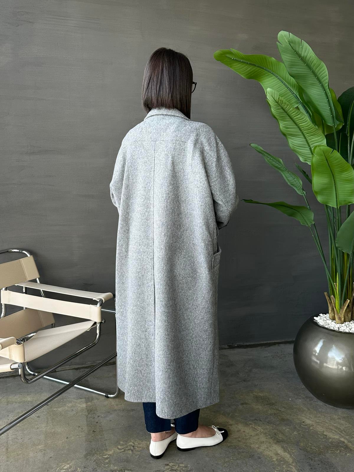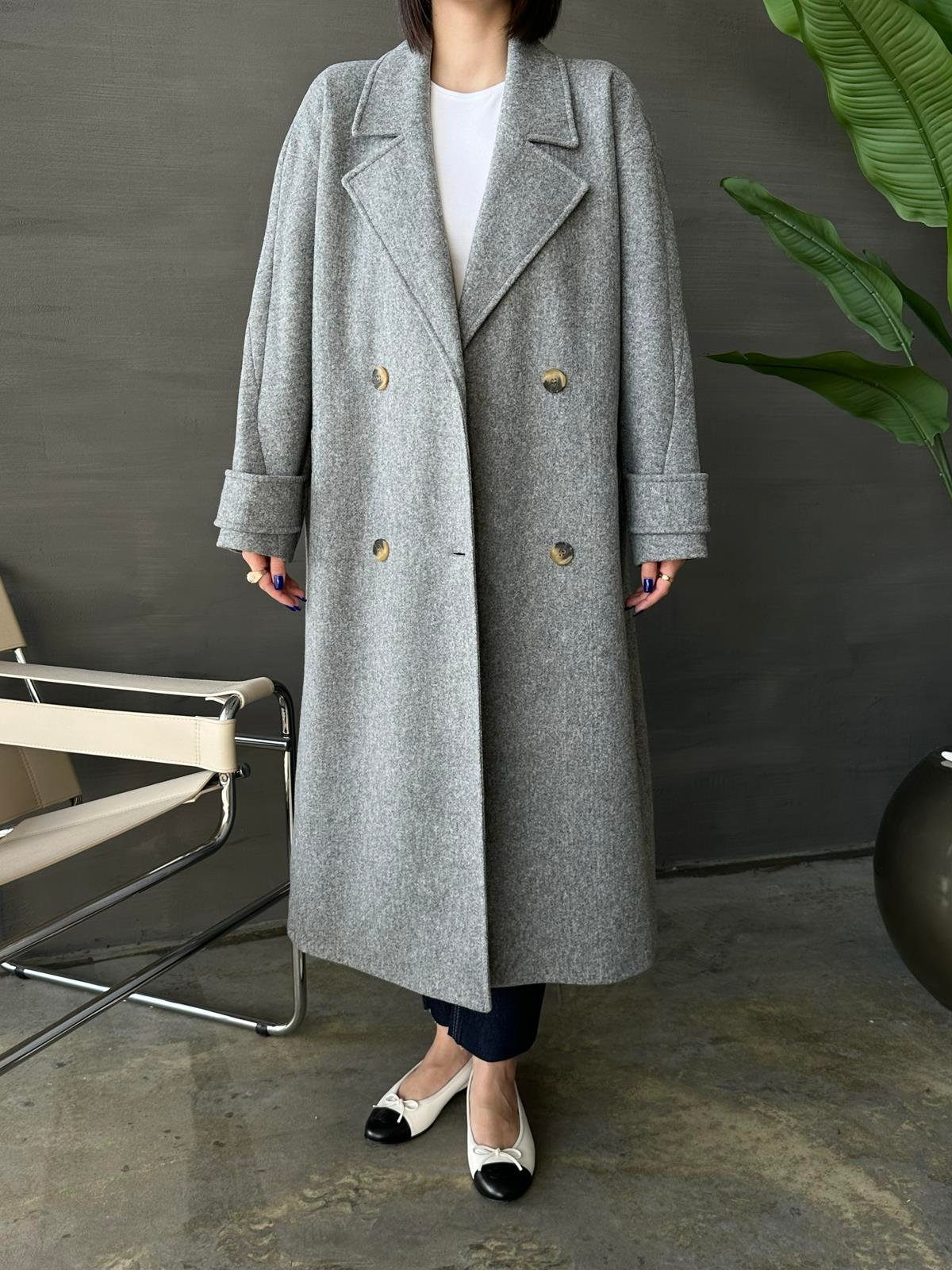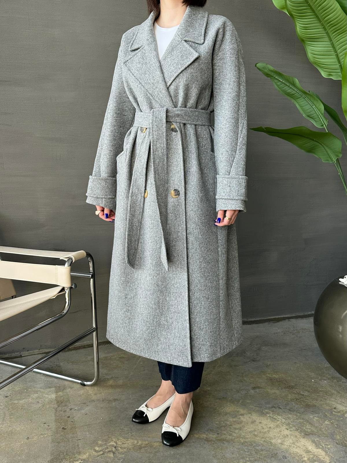 Kelebek Yakalı Kaşe Kaban KOYU GRİ