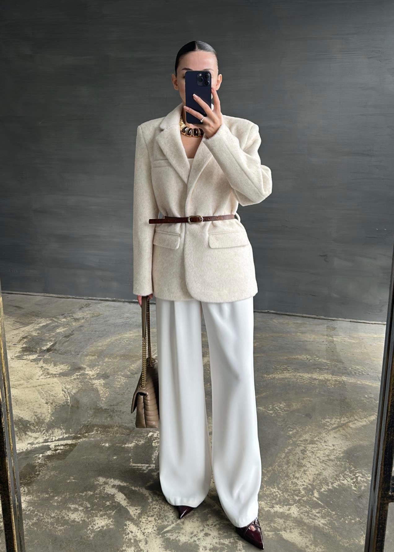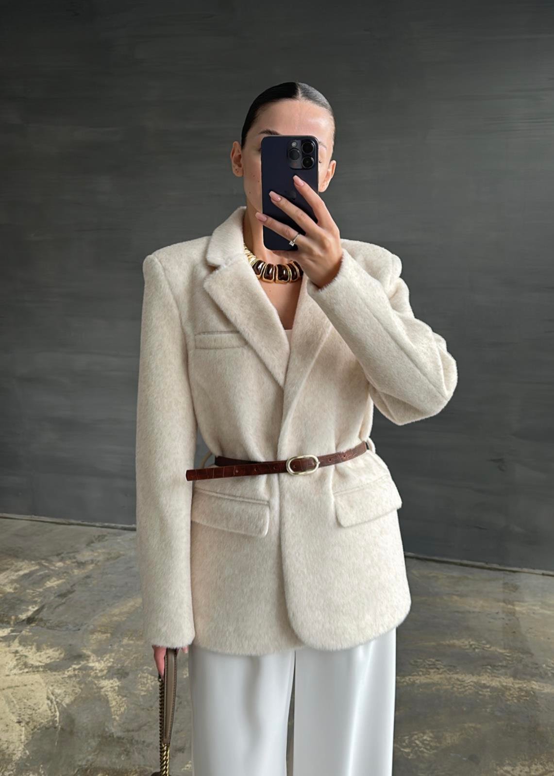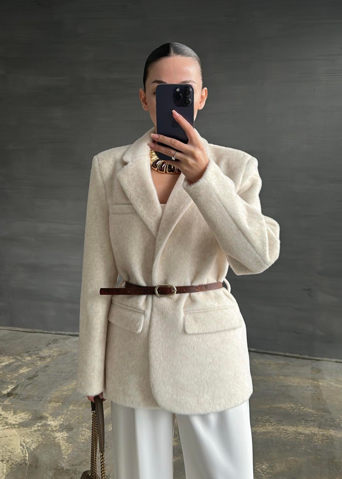 Çekimde S Beden kullanılmıştır. Tam kalıptır, kendi bedeninizi tercih edebilirsiniz. Kemer ürüne dahildir.