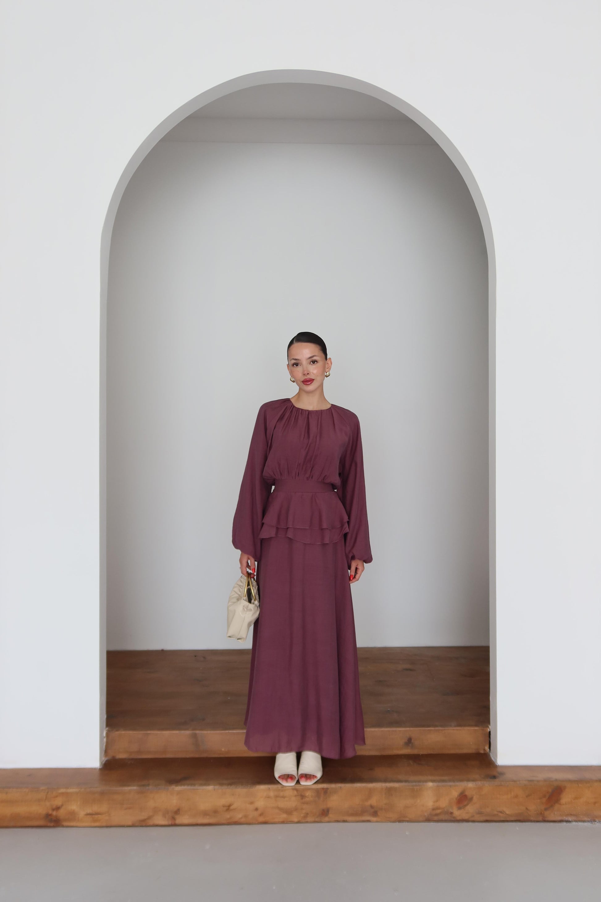 Çekimde S Beden kullanılmıştır. Elbise arka bel lastiklidir, full astarlıdır