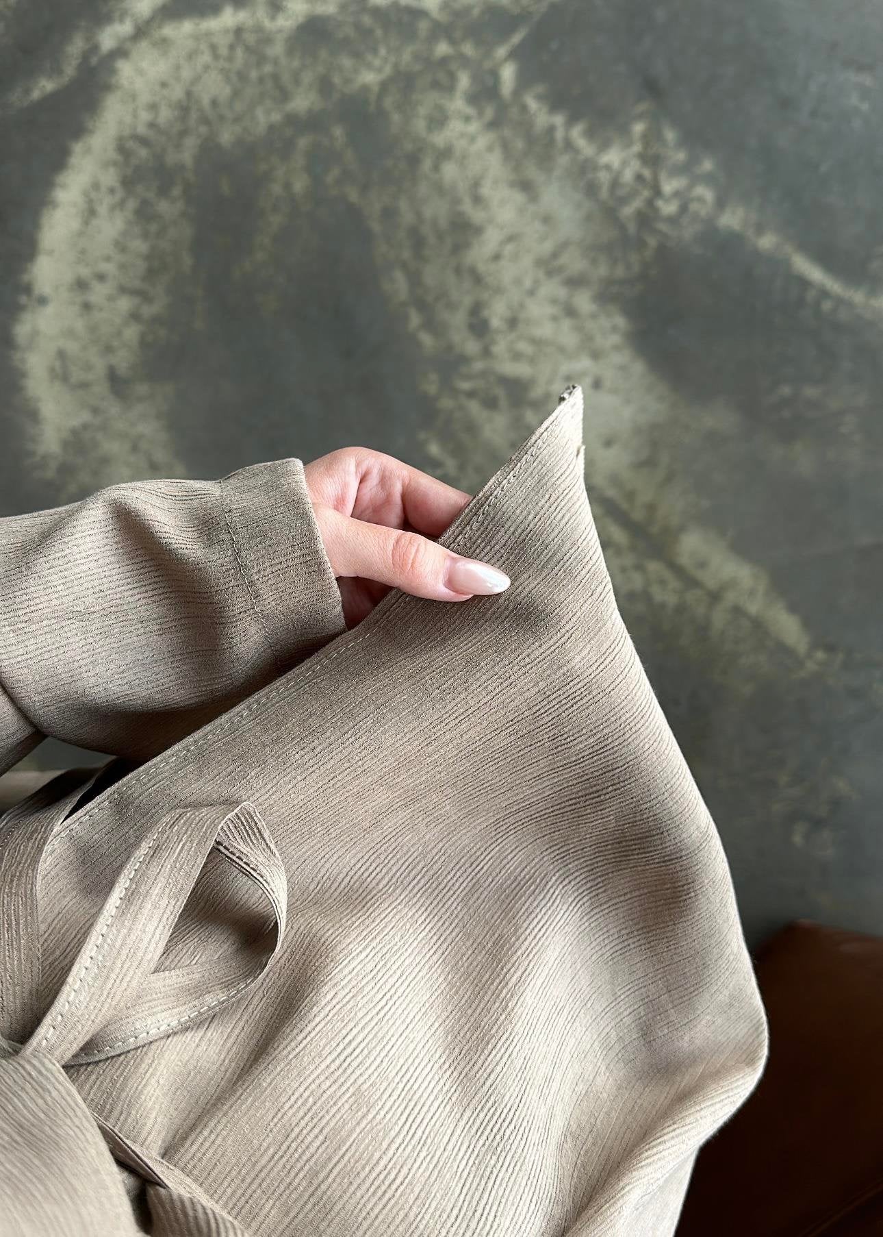Şal Yaka Krinkıl Kimono Takım VİZON