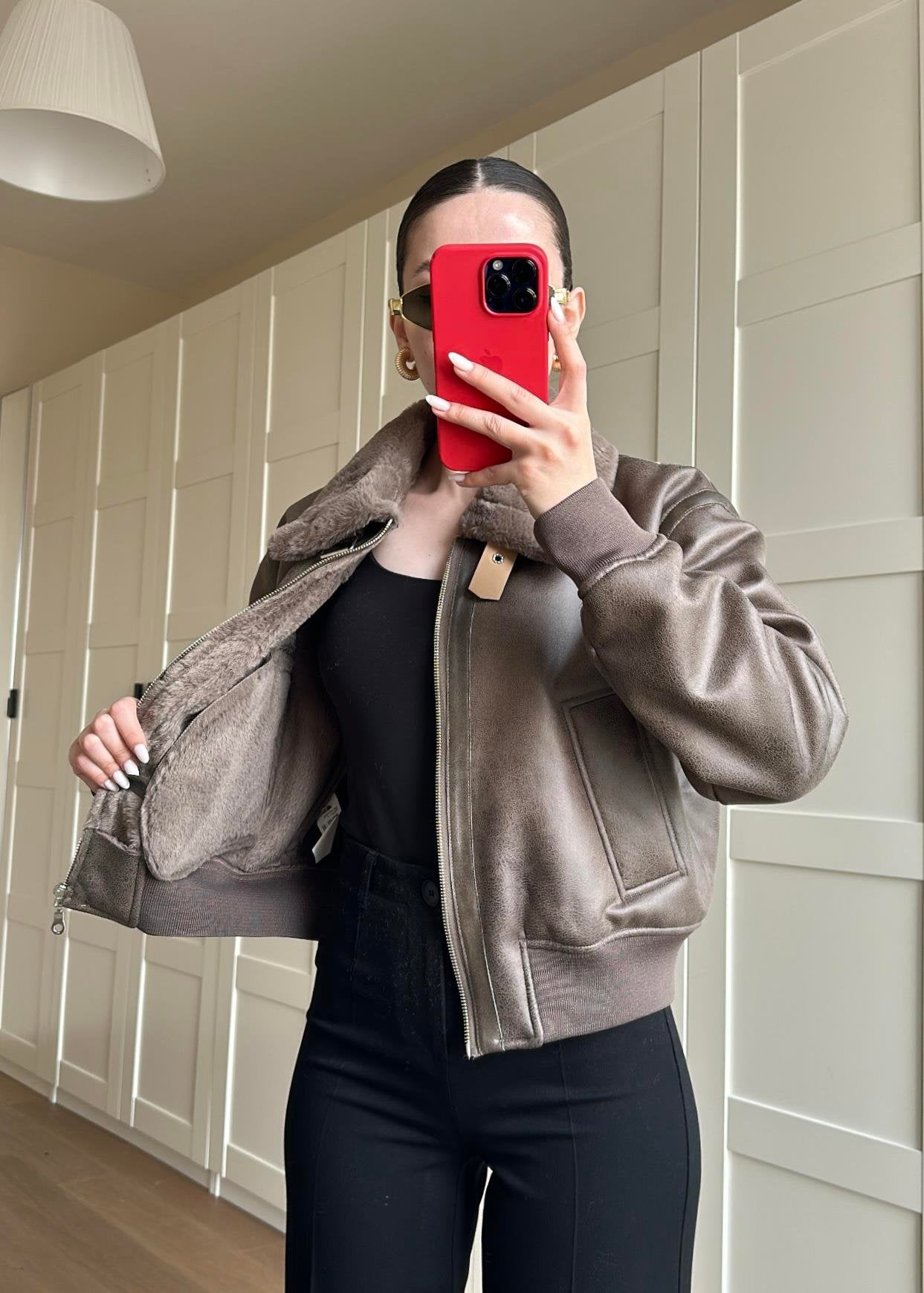 İçi Kürklü Deri Detaylı Mont VİZON