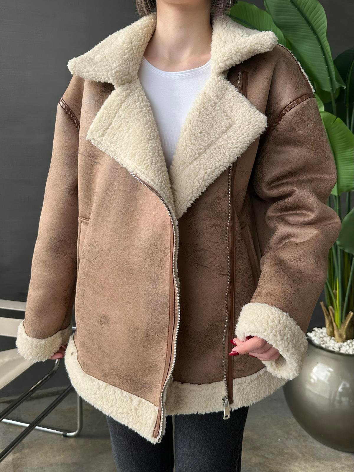 Çekimde S Beden kullanılmıştır,İçi kürklüdür,tam kalıptır,dışı nubuk deridir.