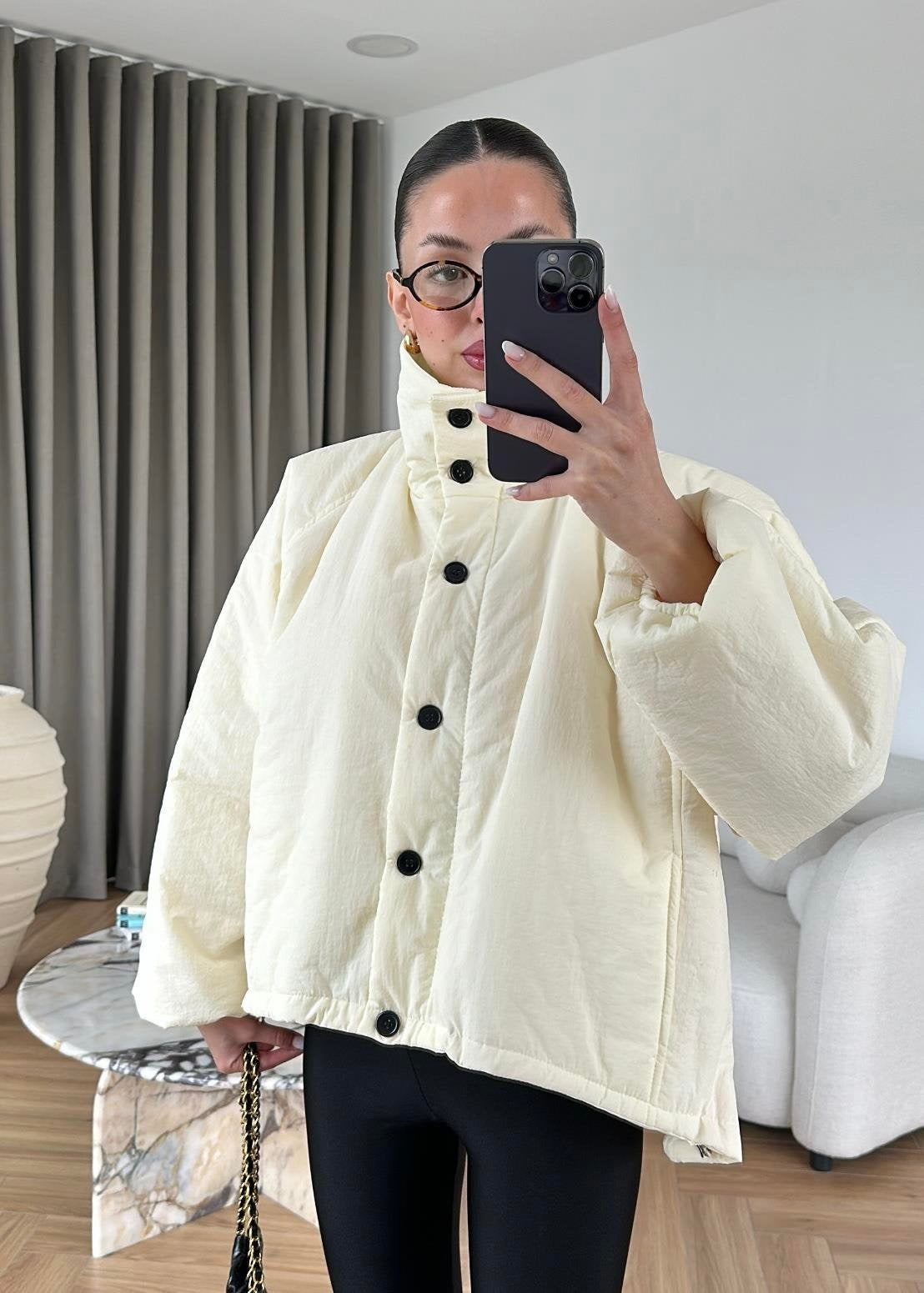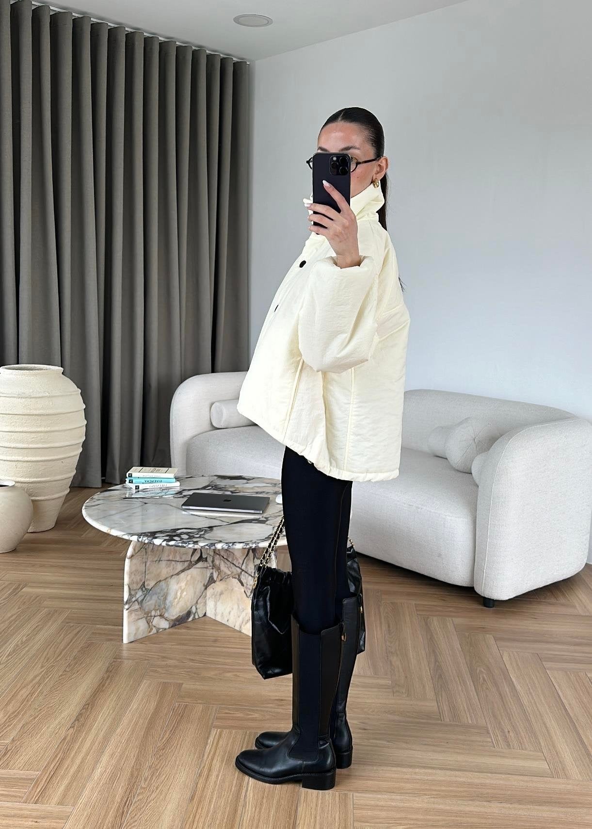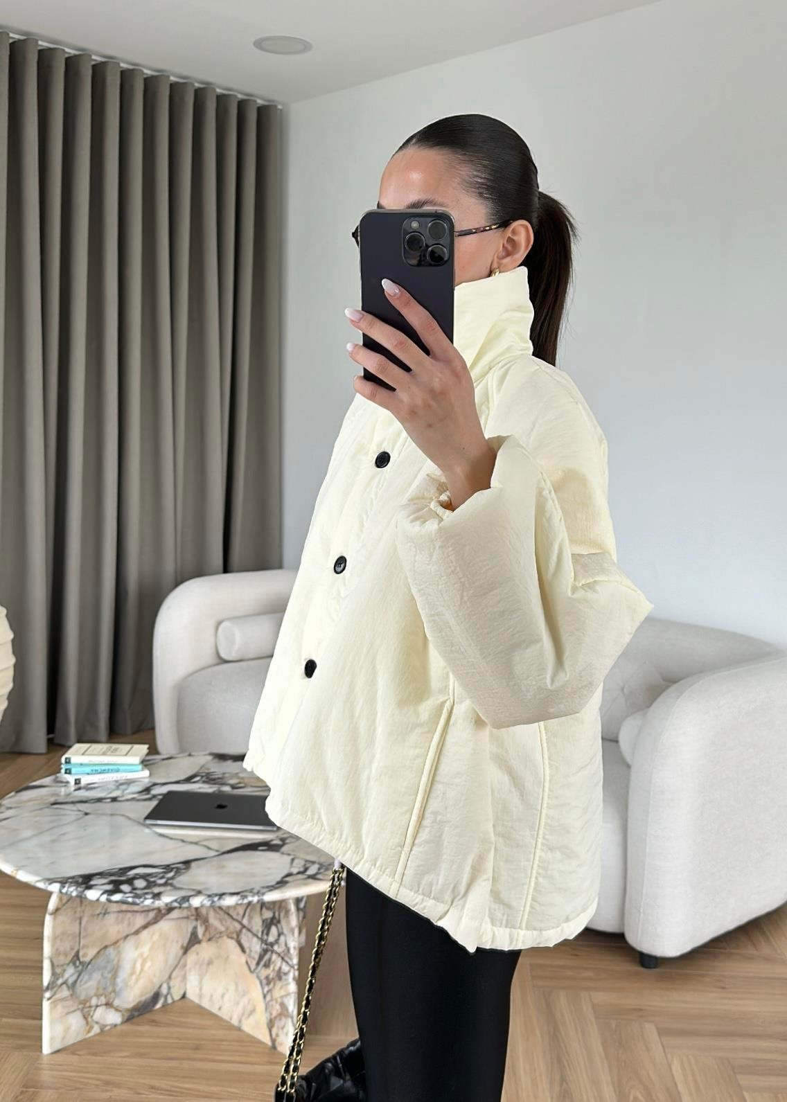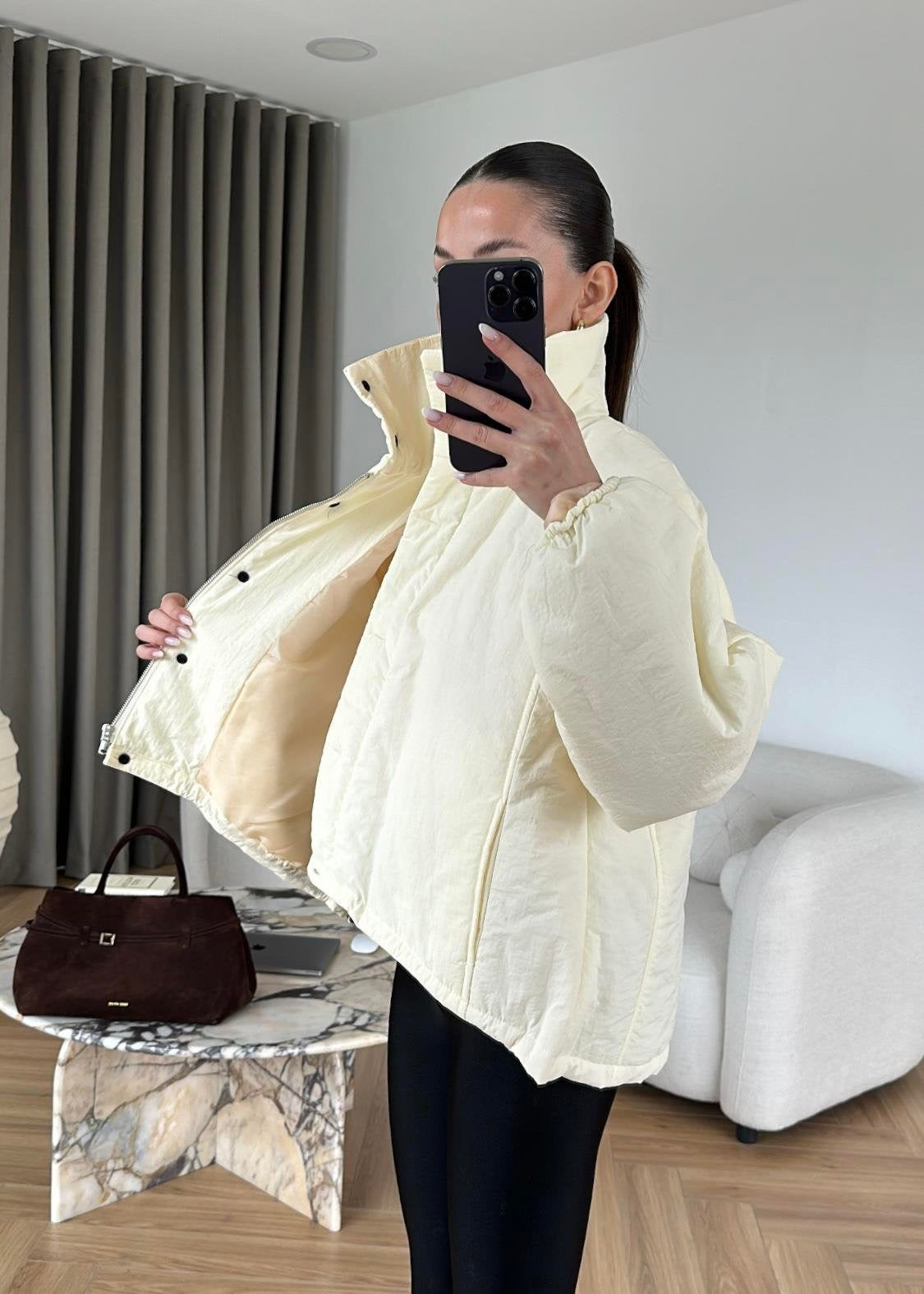 Dik Yakalı Arkası Uzun Mont EKRU