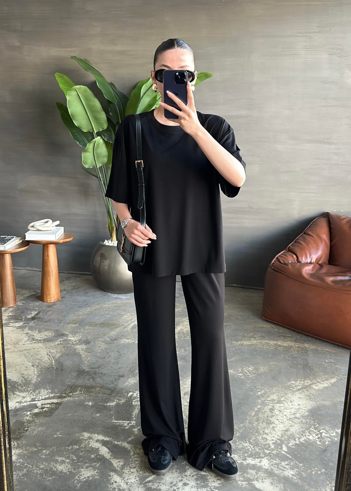 Çekimde S Beden kullanılmıştır.Pantolon beli ayarlanabilir iplidir ve lastiklidir.