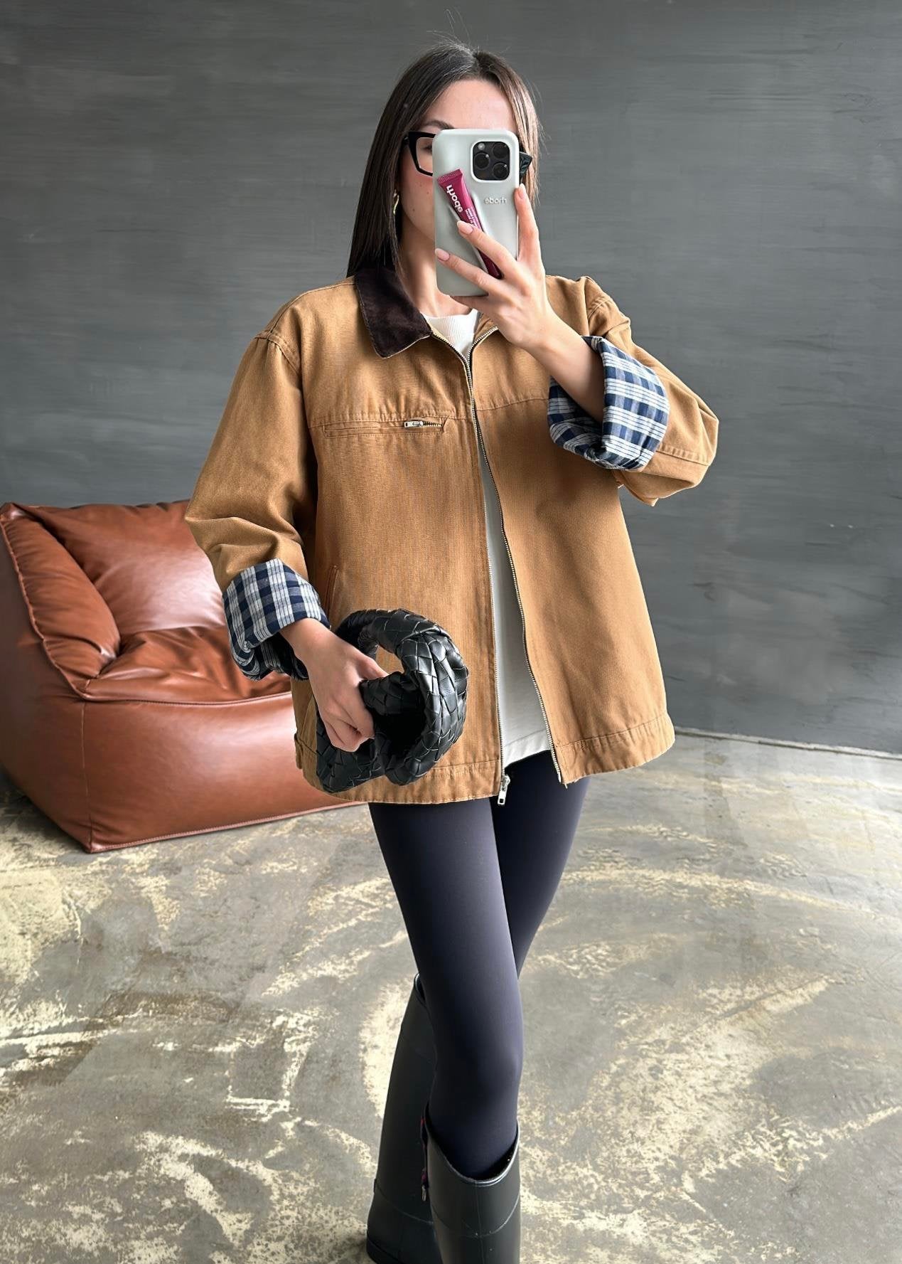 İçi Ekose Astarlı Ceket CAMEL