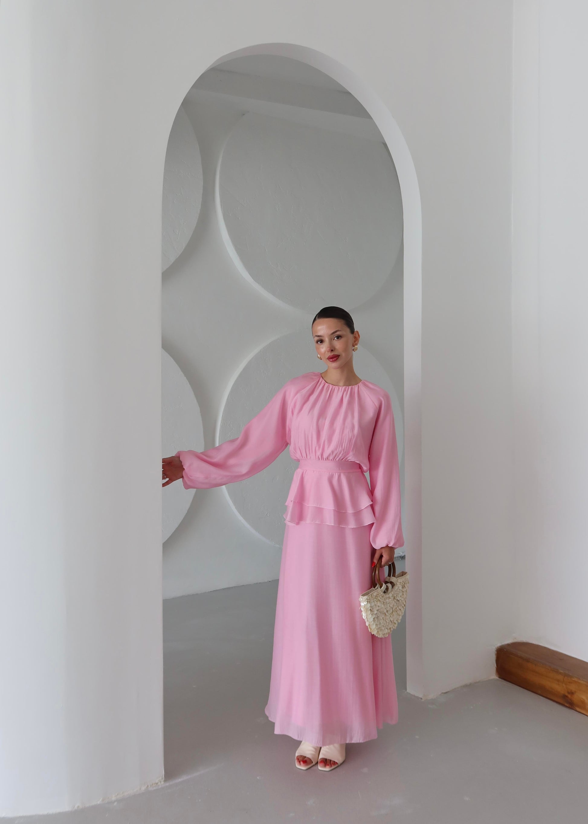 Beli Volanlı Elbise PEMBE