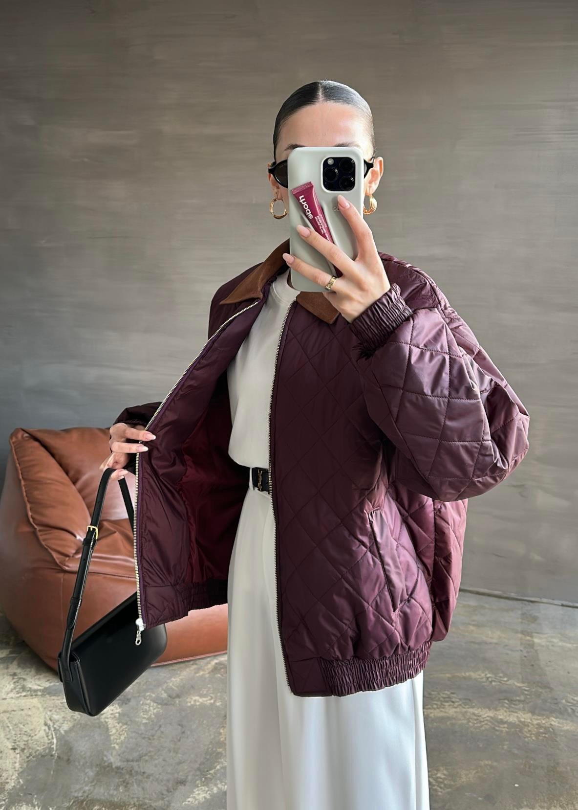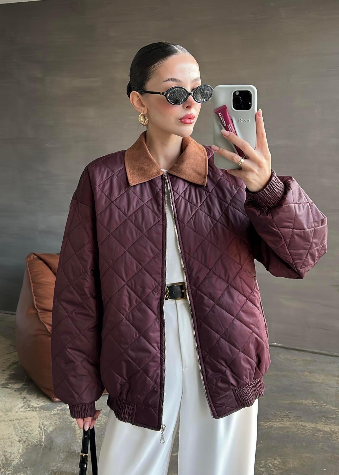 Süet Yakalı Kapitone Mont BORDO