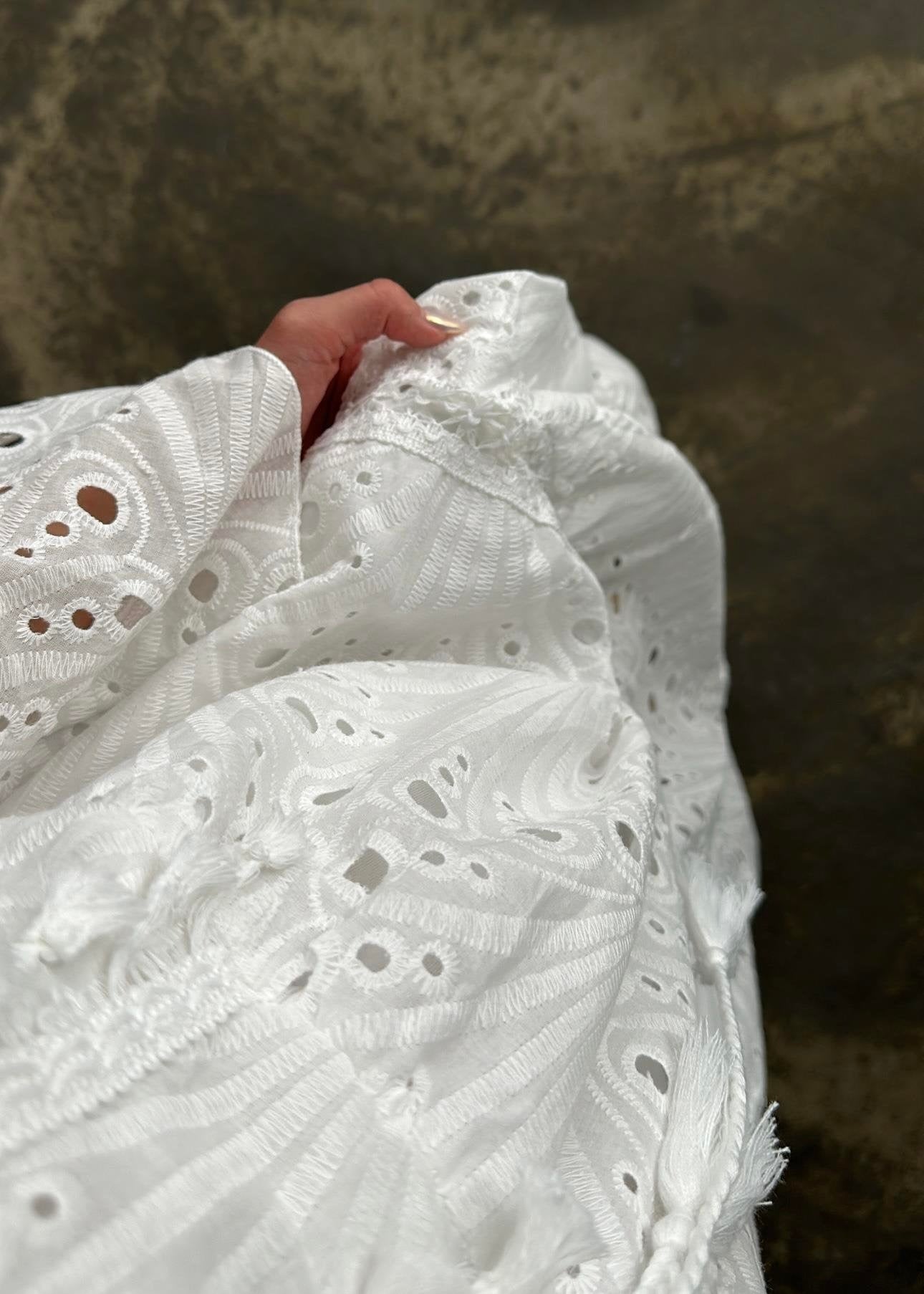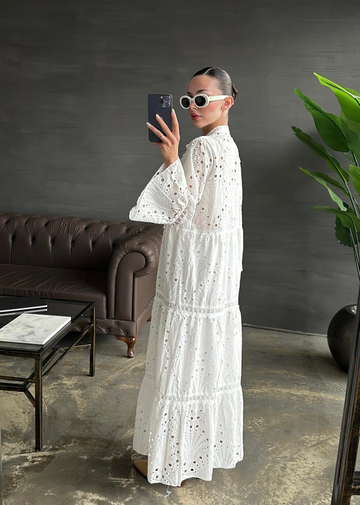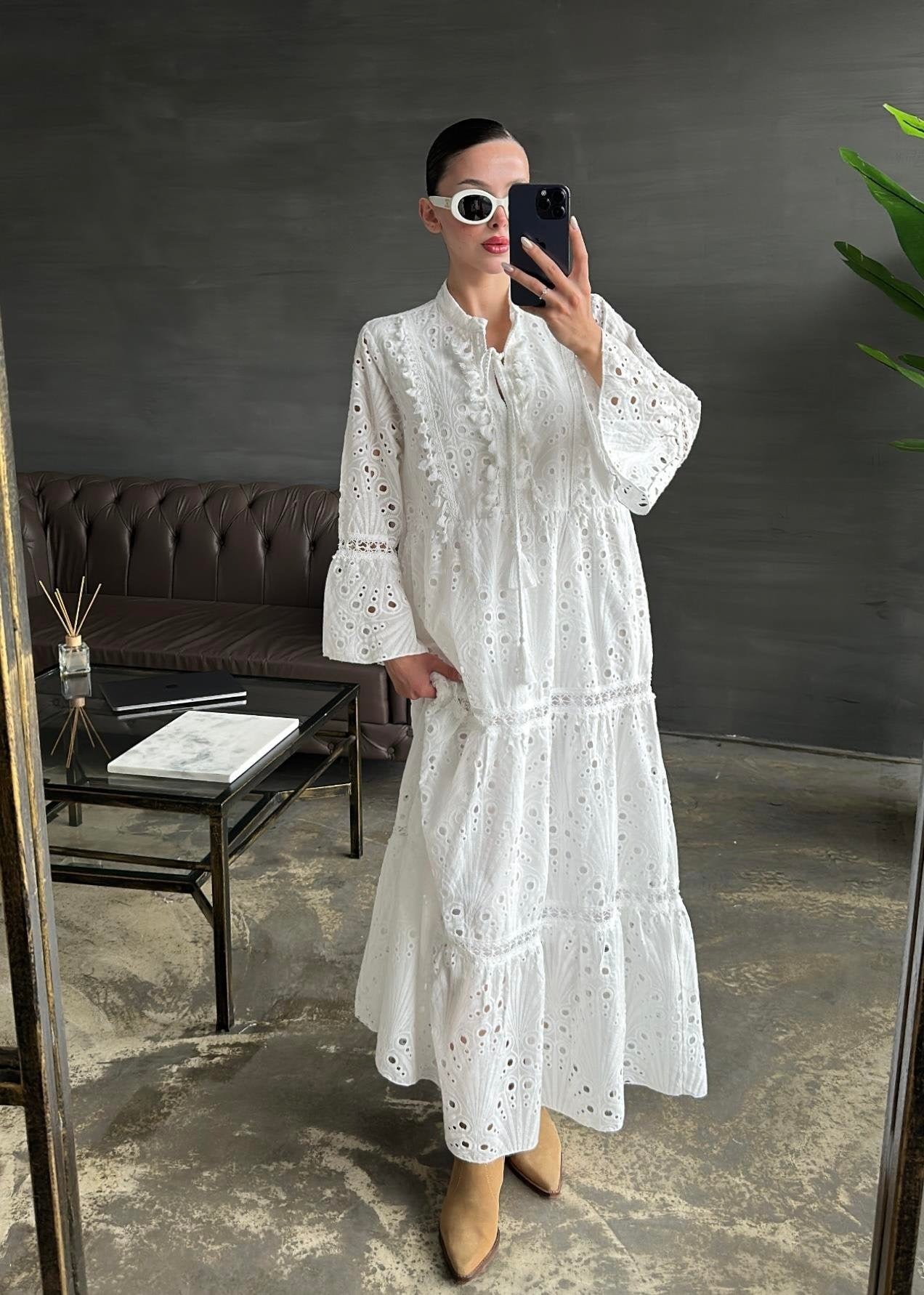 İspanyol Kol Fisto Detay Elbise BEYAZ