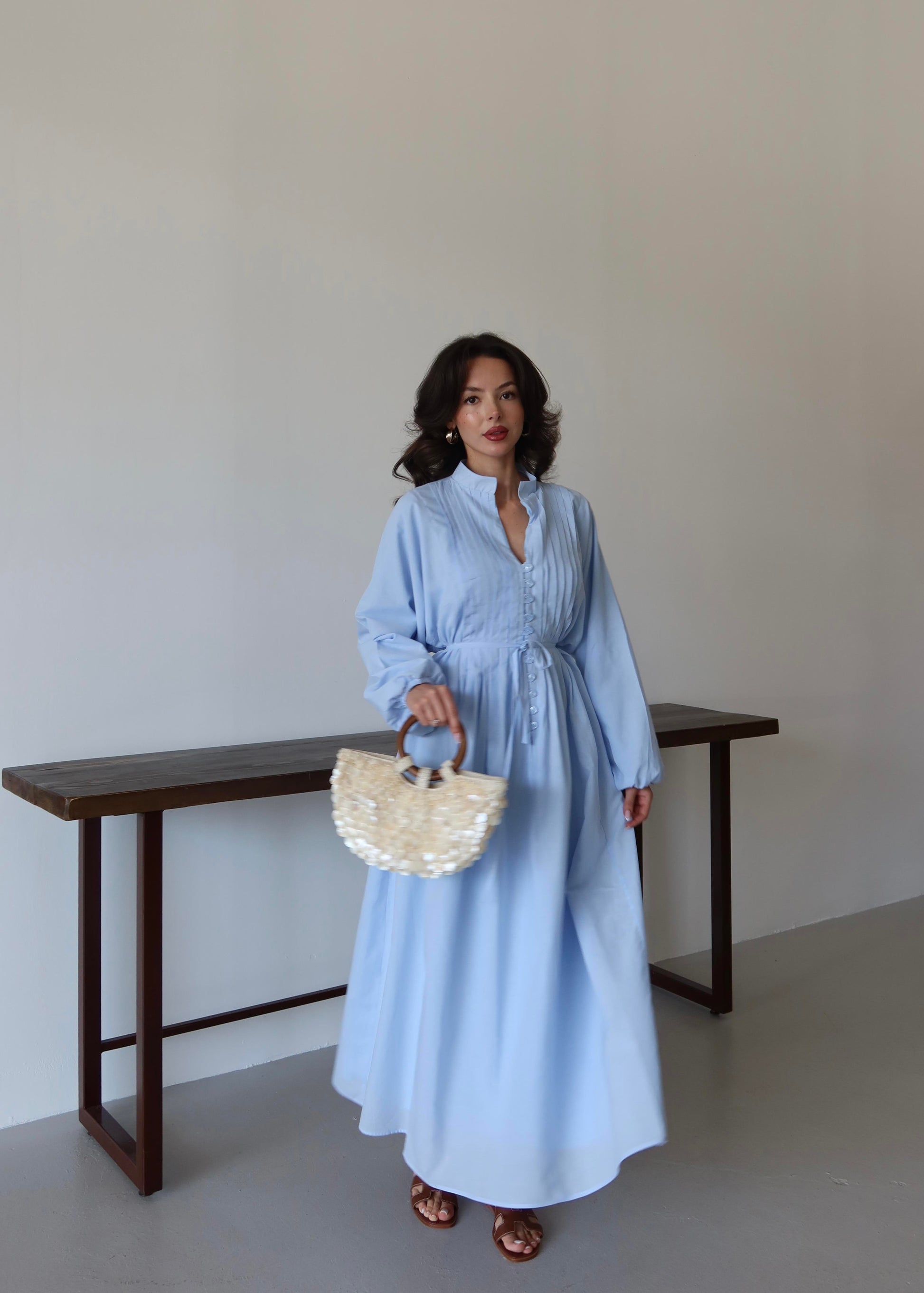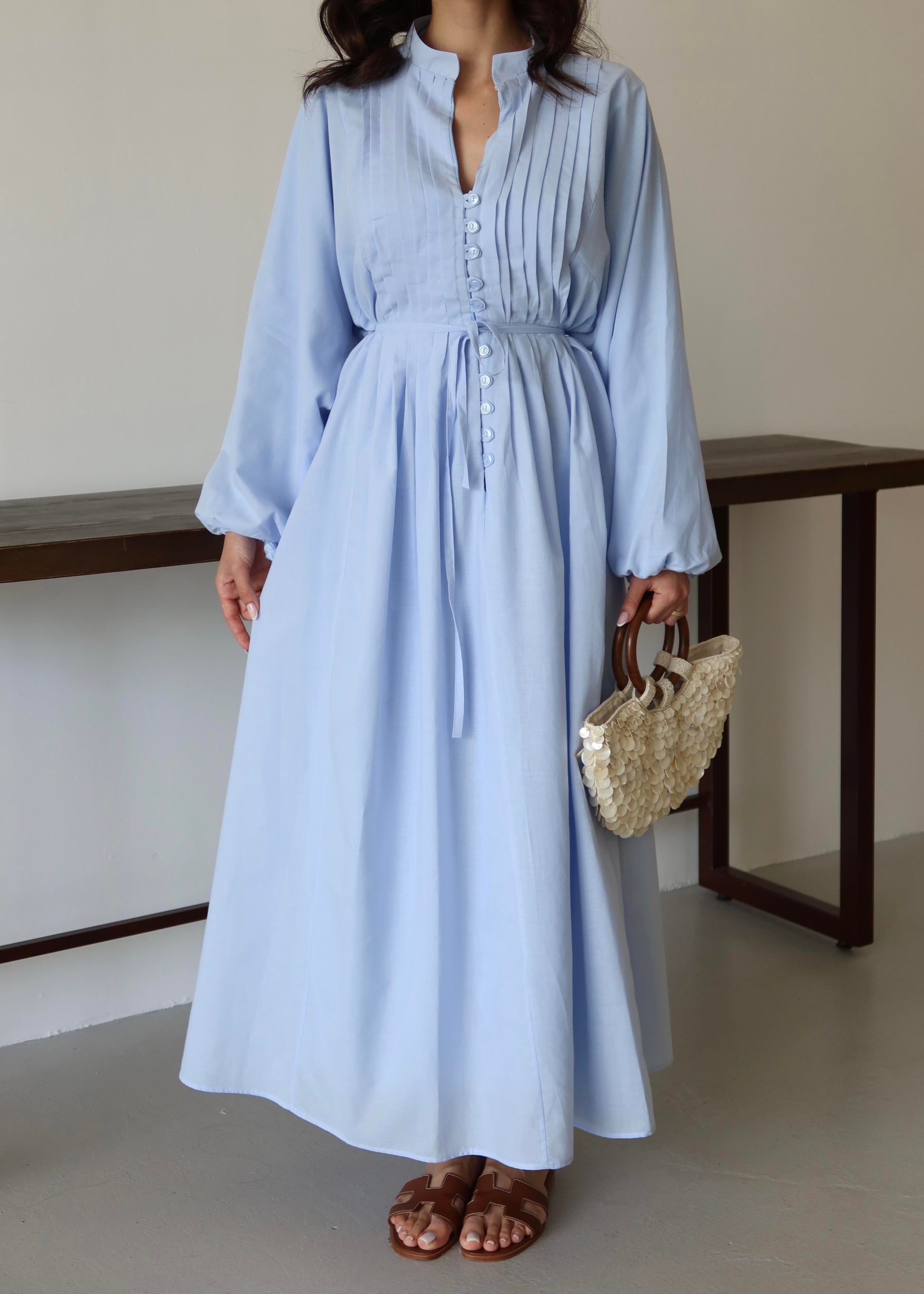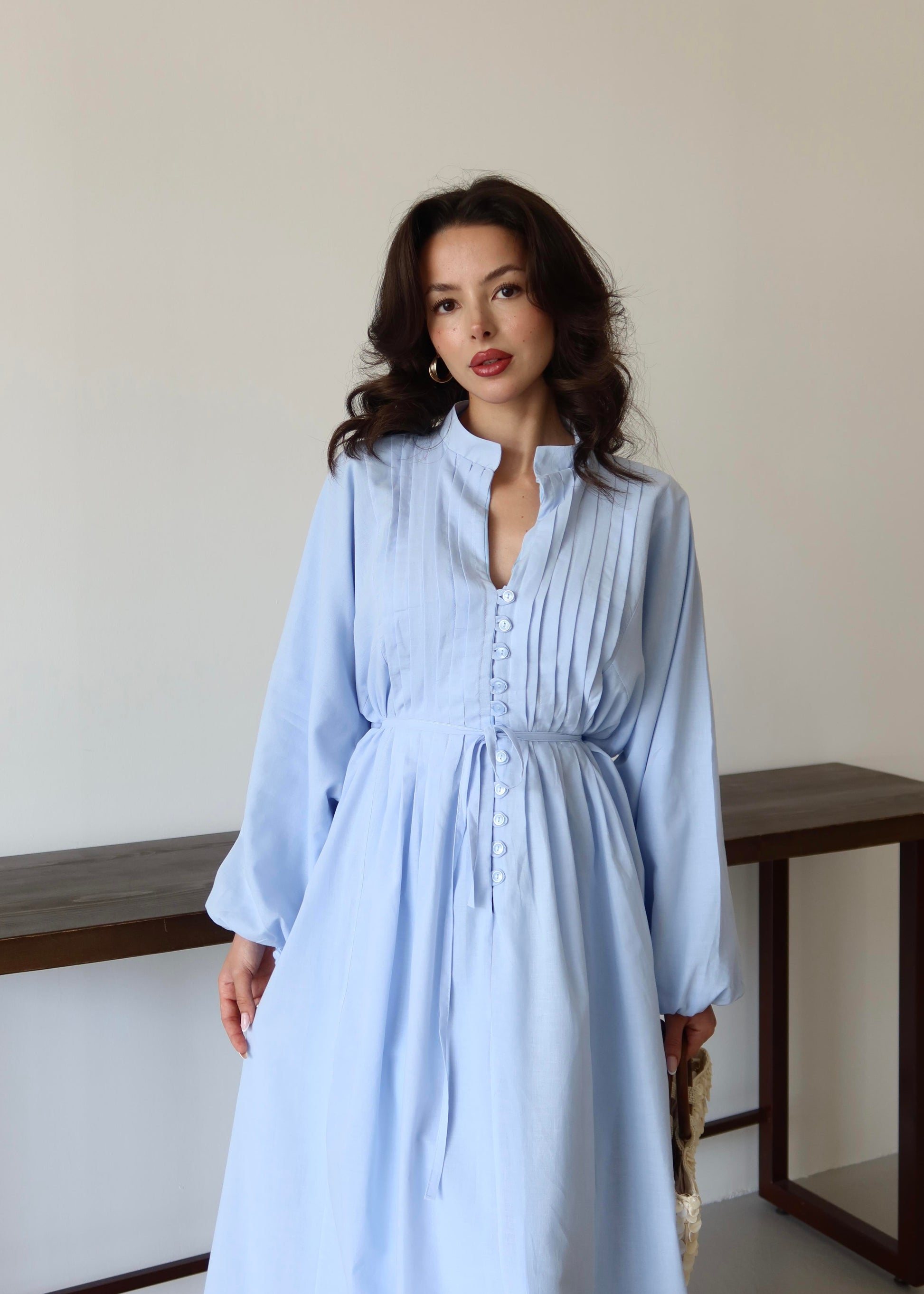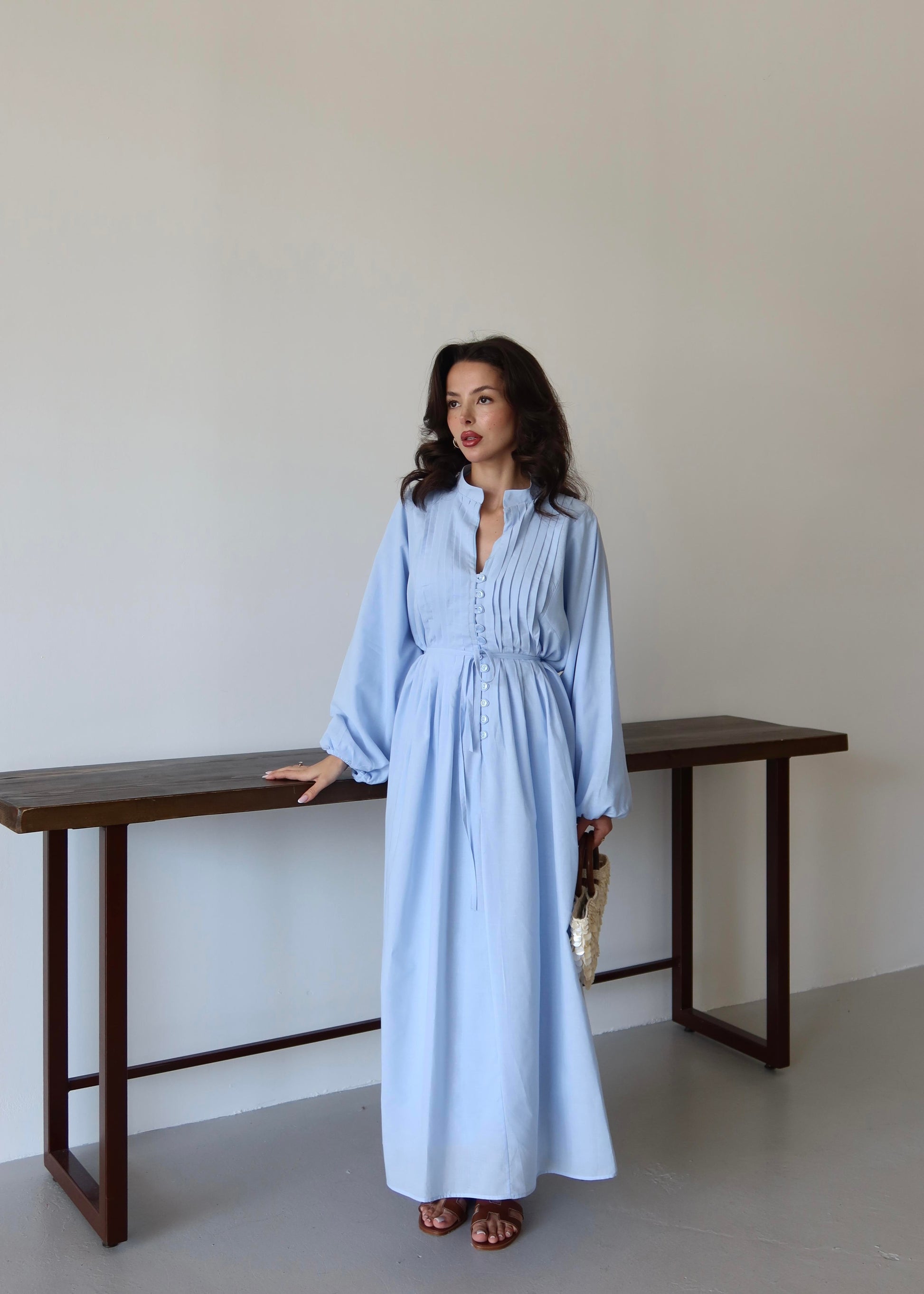 Nervürlü Pamuk Vual Elbise BEBE MAVİSİ