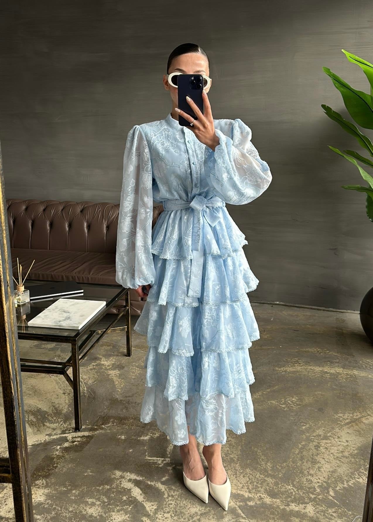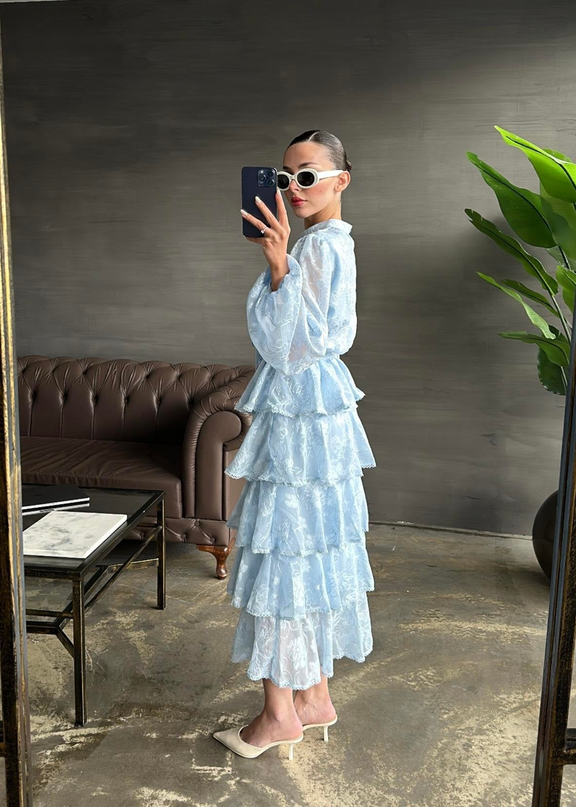 Çiçek Desenli Fırfırlı Elbise BEBE MAVİ