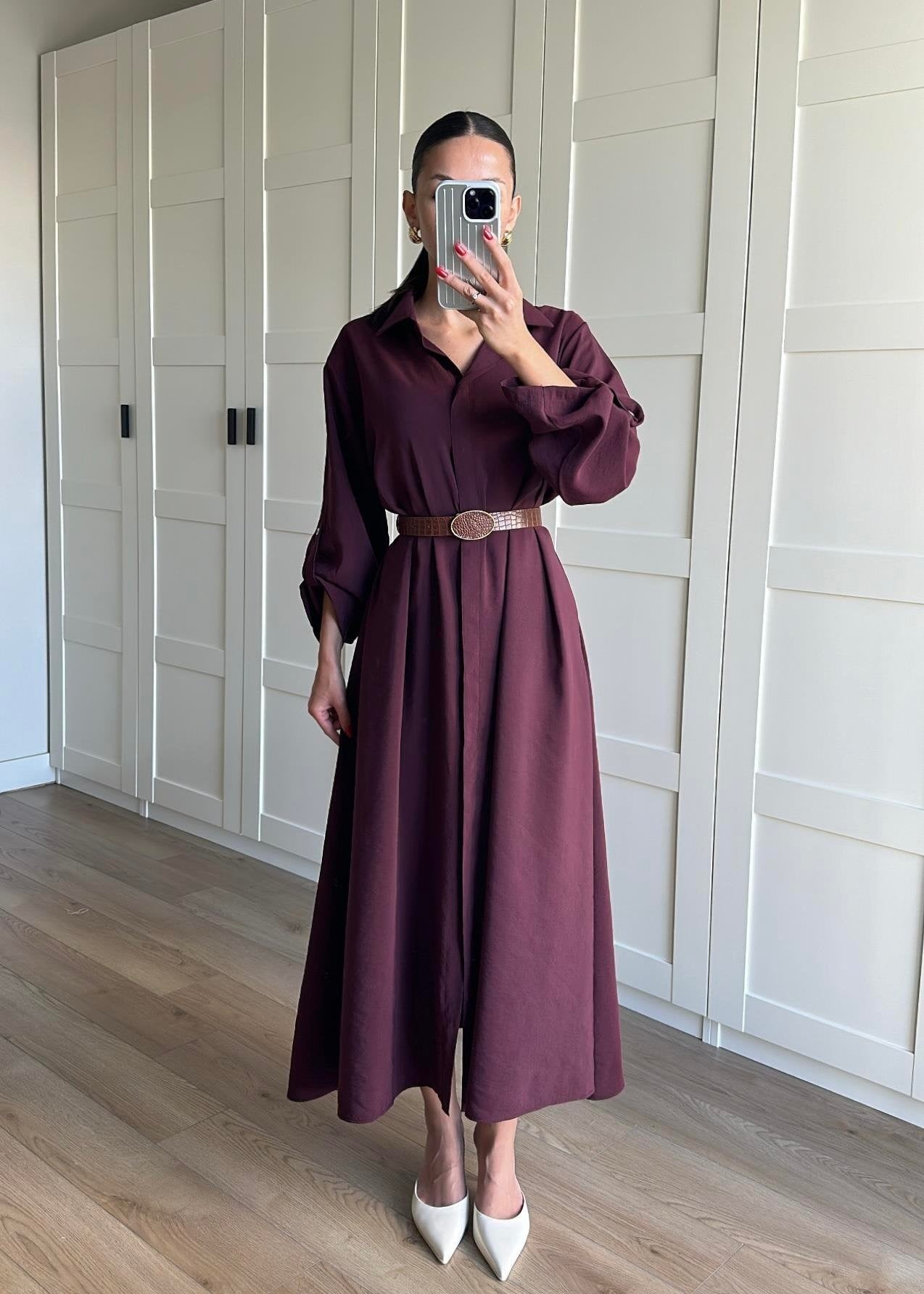 Tensel Kemerli Gömlek Elbise MÜRDÜM