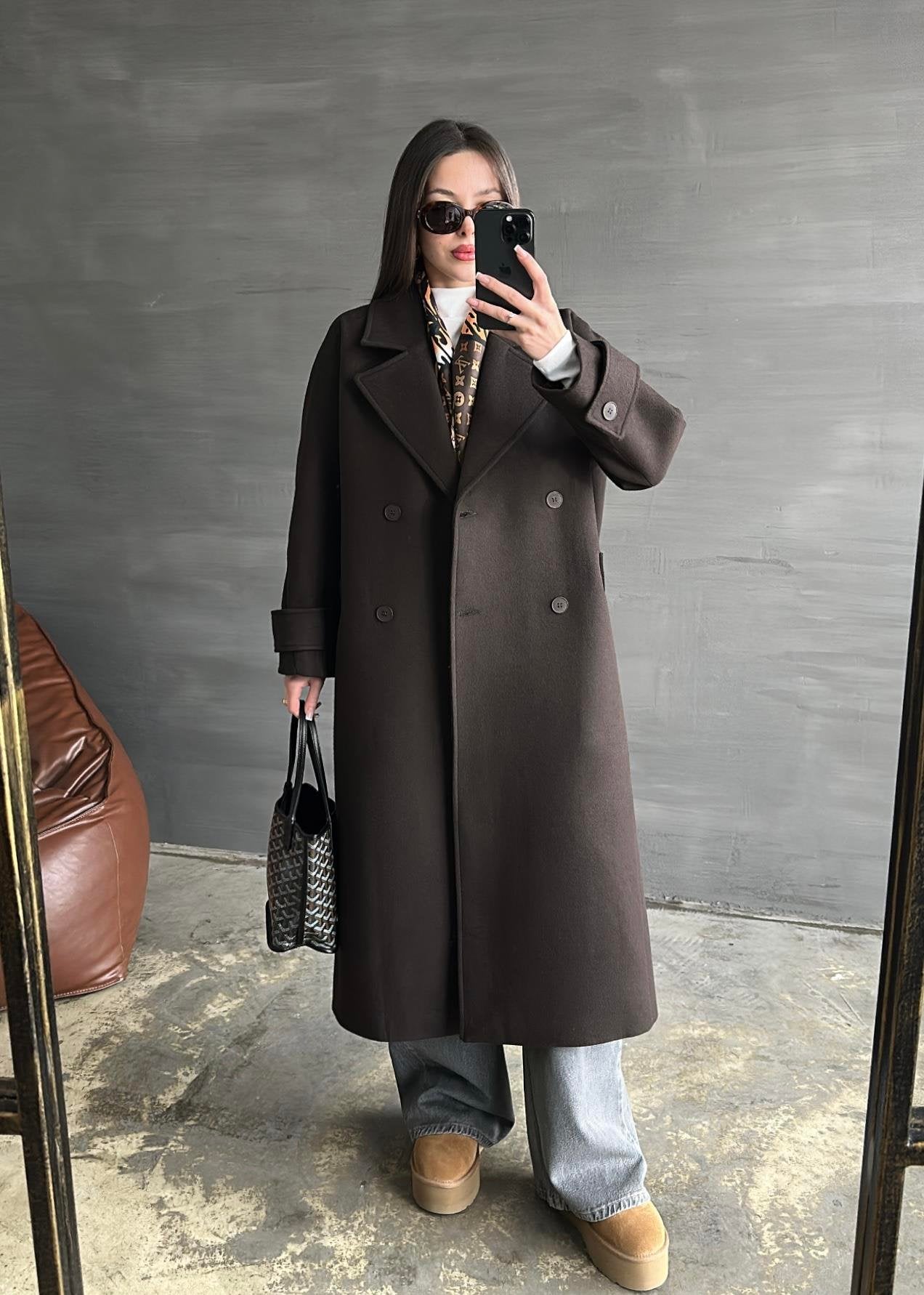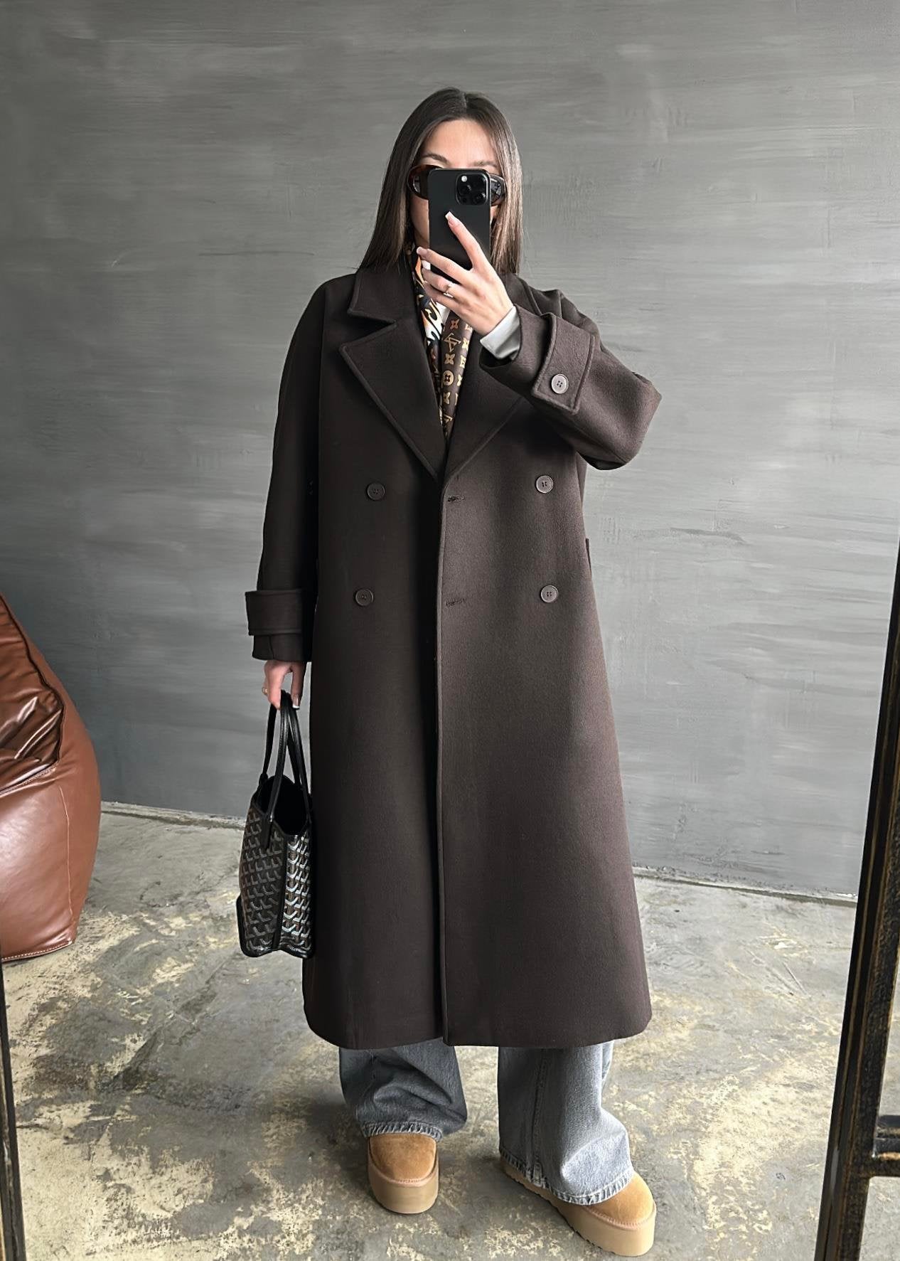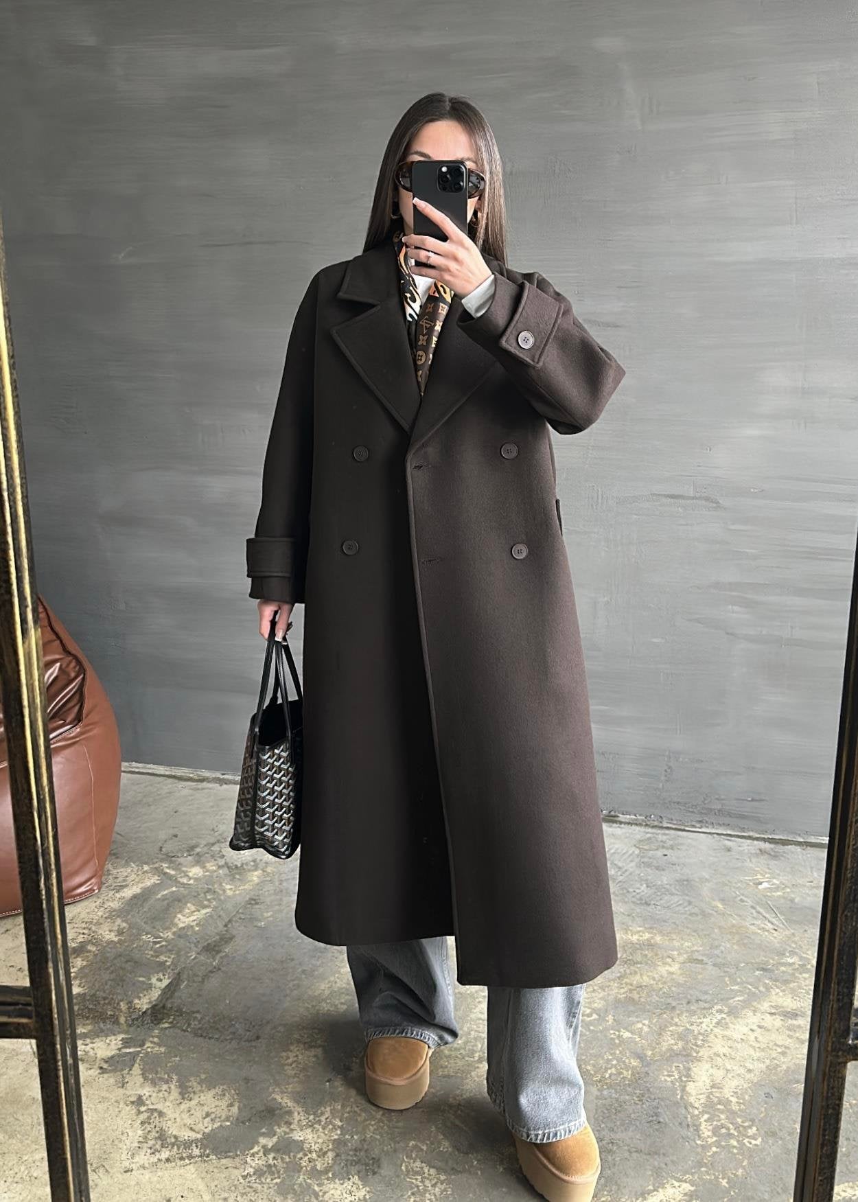 Kelebek Yakalı Kaşe Kaban ACI KAHVE