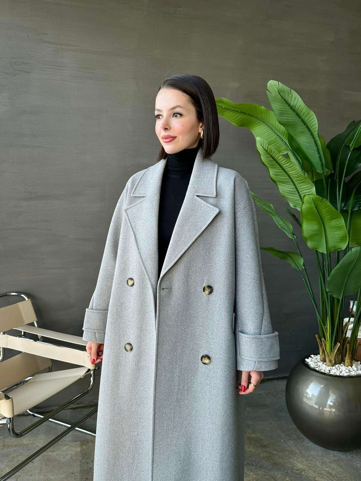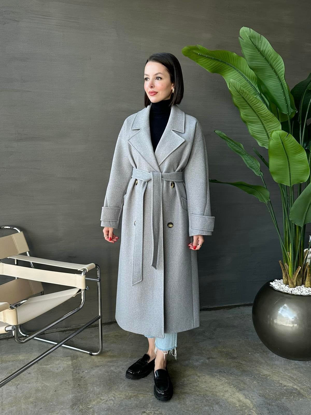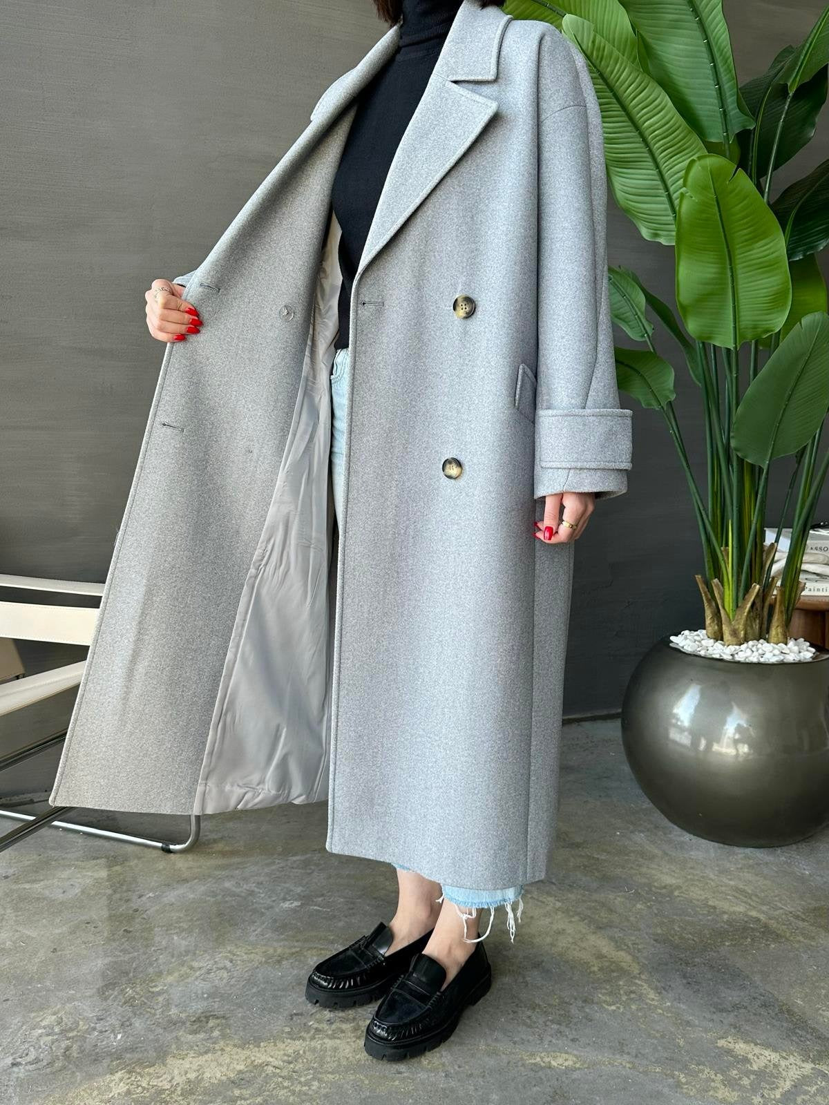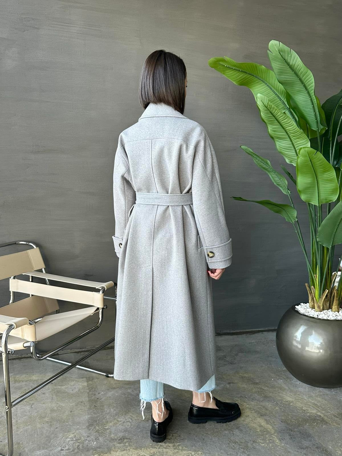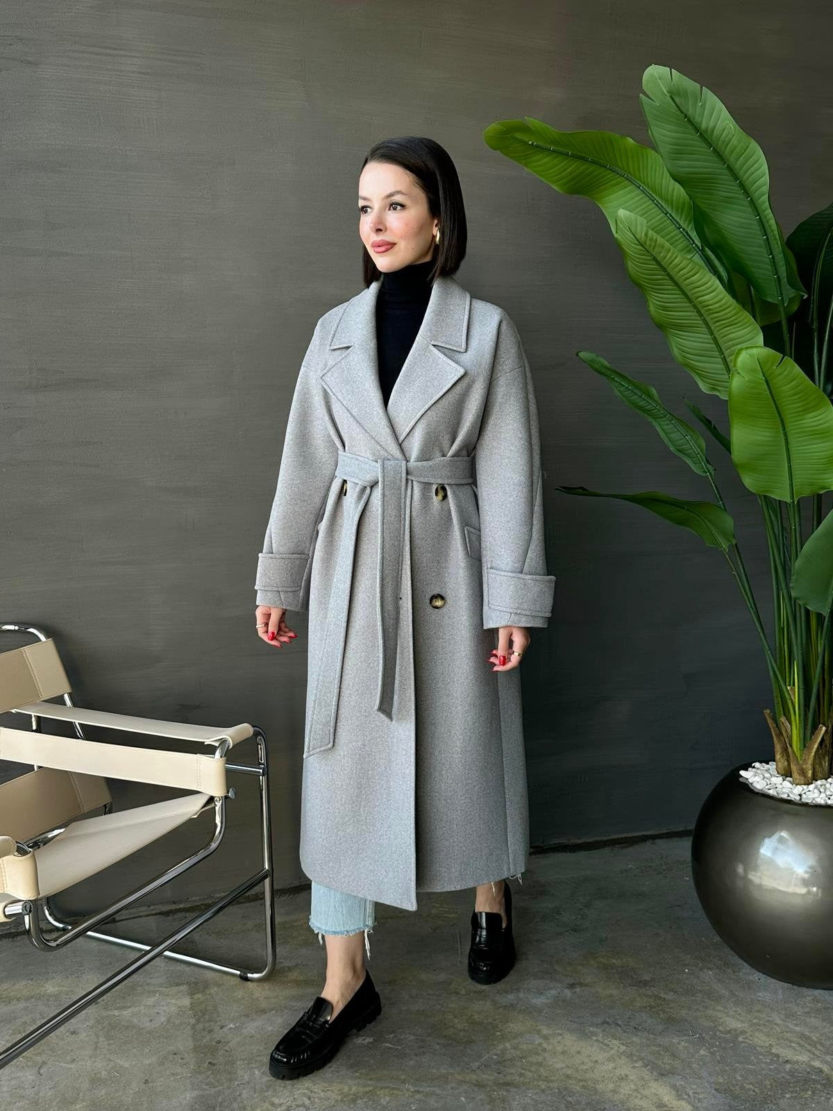 Kelebek Yakalı Uzun Kaban AÇIK GRİ