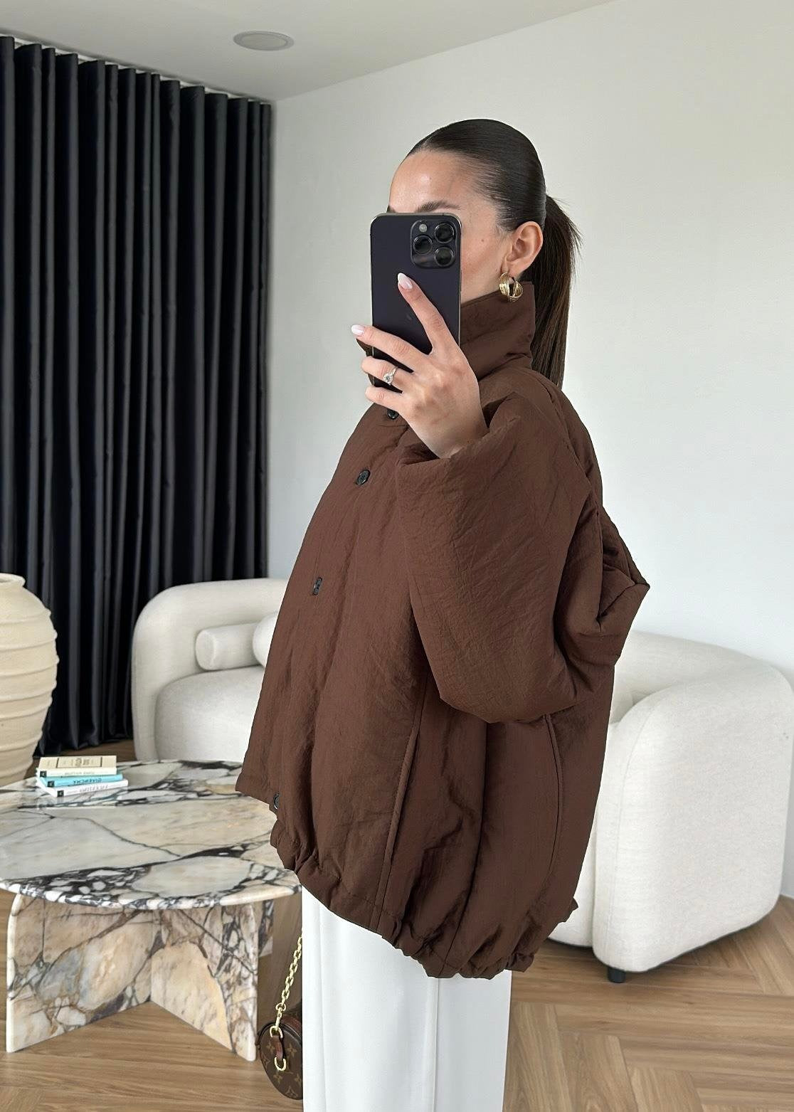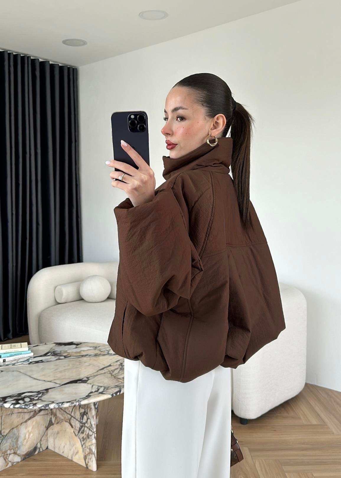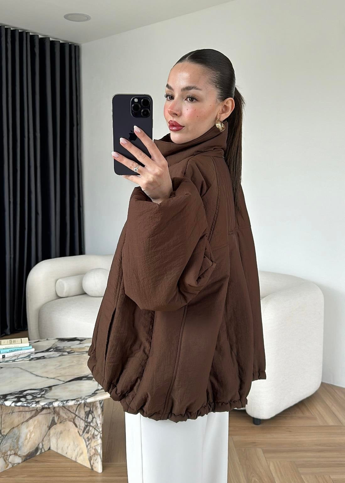 Dik Yakalı Arkası Uzun Mont KAHVE