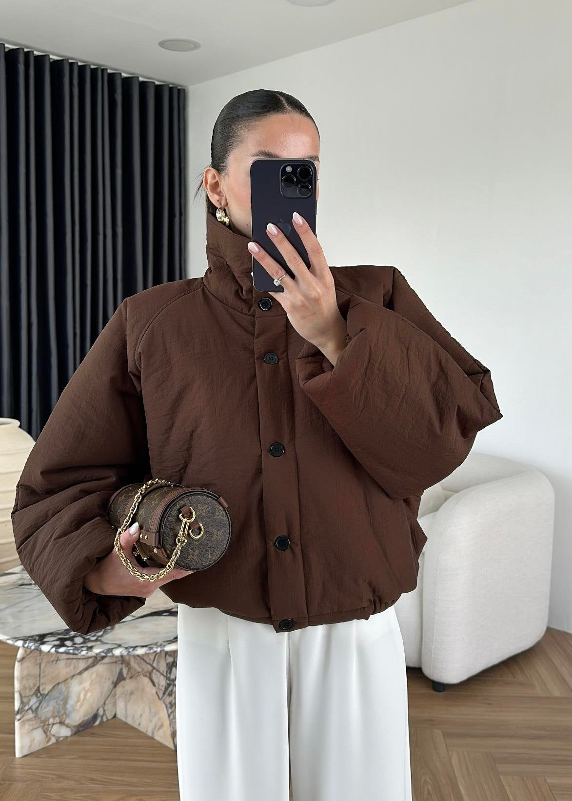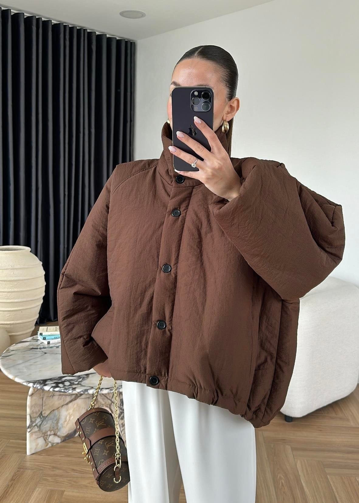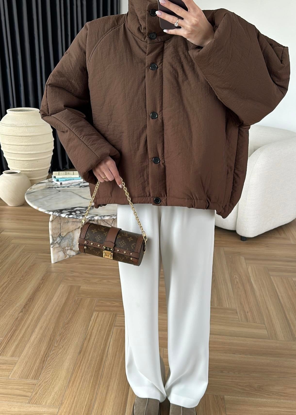 Dik Yakalı Arkası Uzun Mont KAHVE