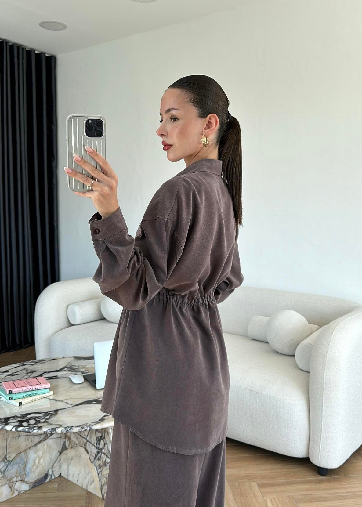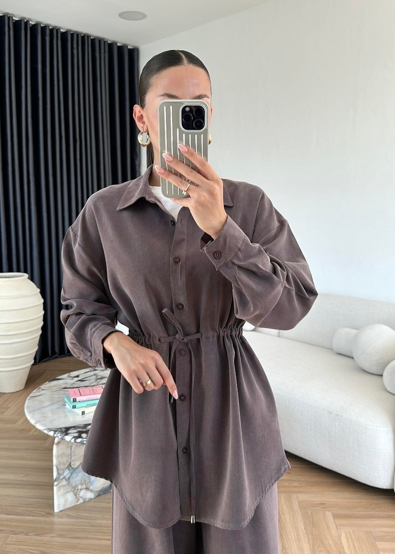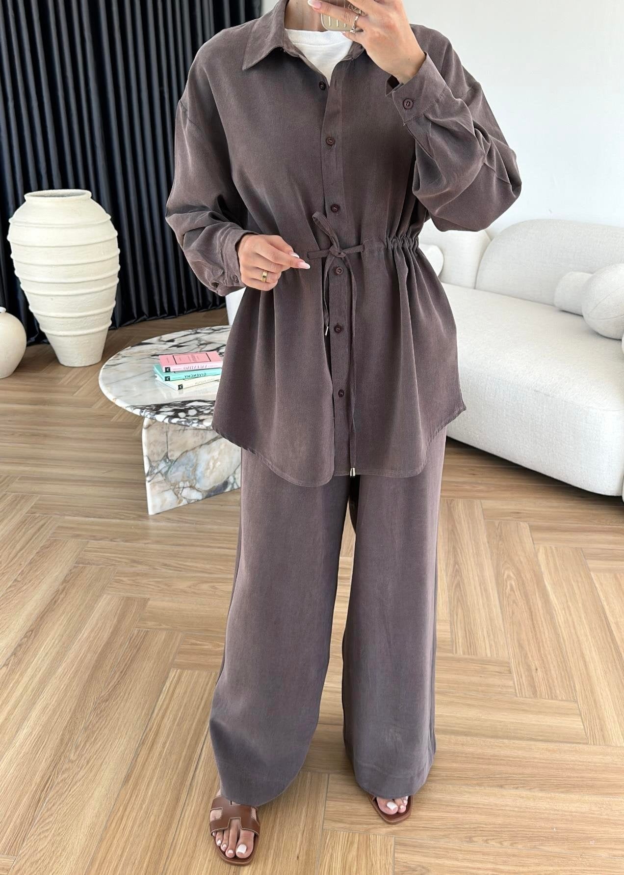 Bağcıklı Tensel Modal Takım Kahve