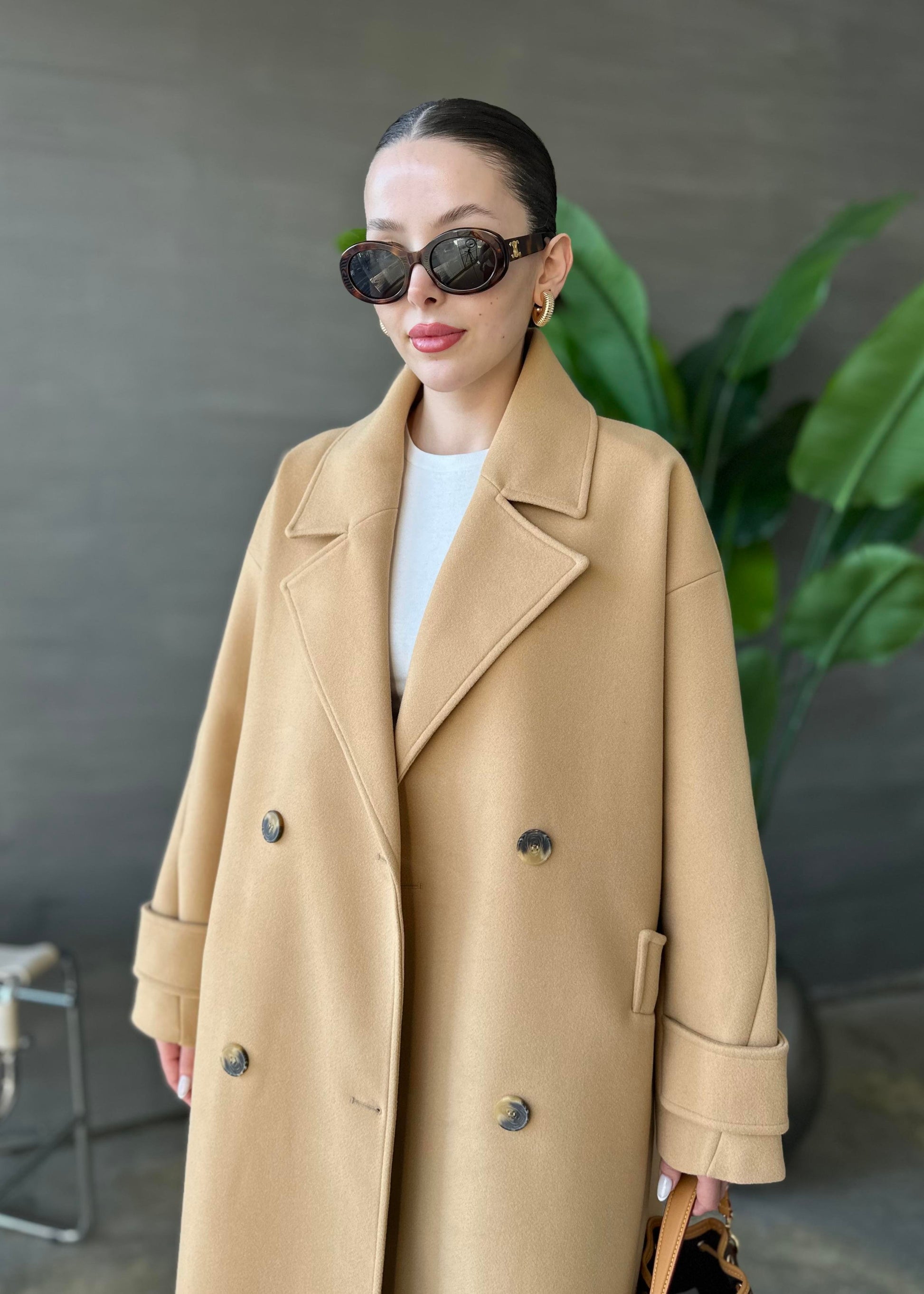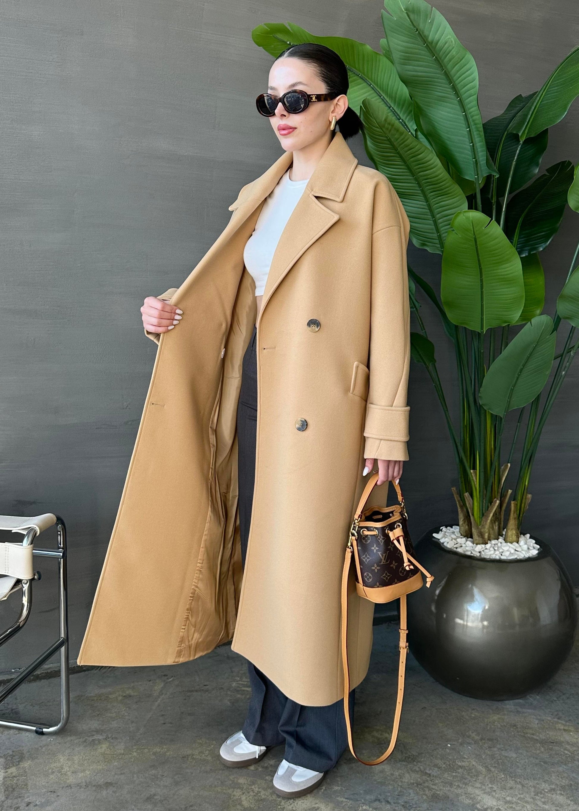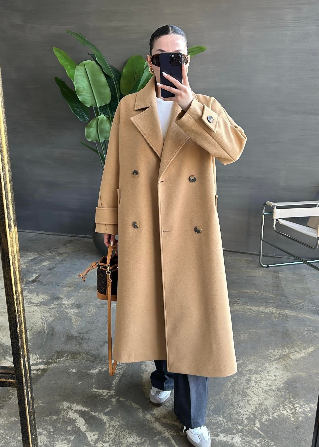 Kelebek Yakalı Uzun Kaban AÇIK CAMEL